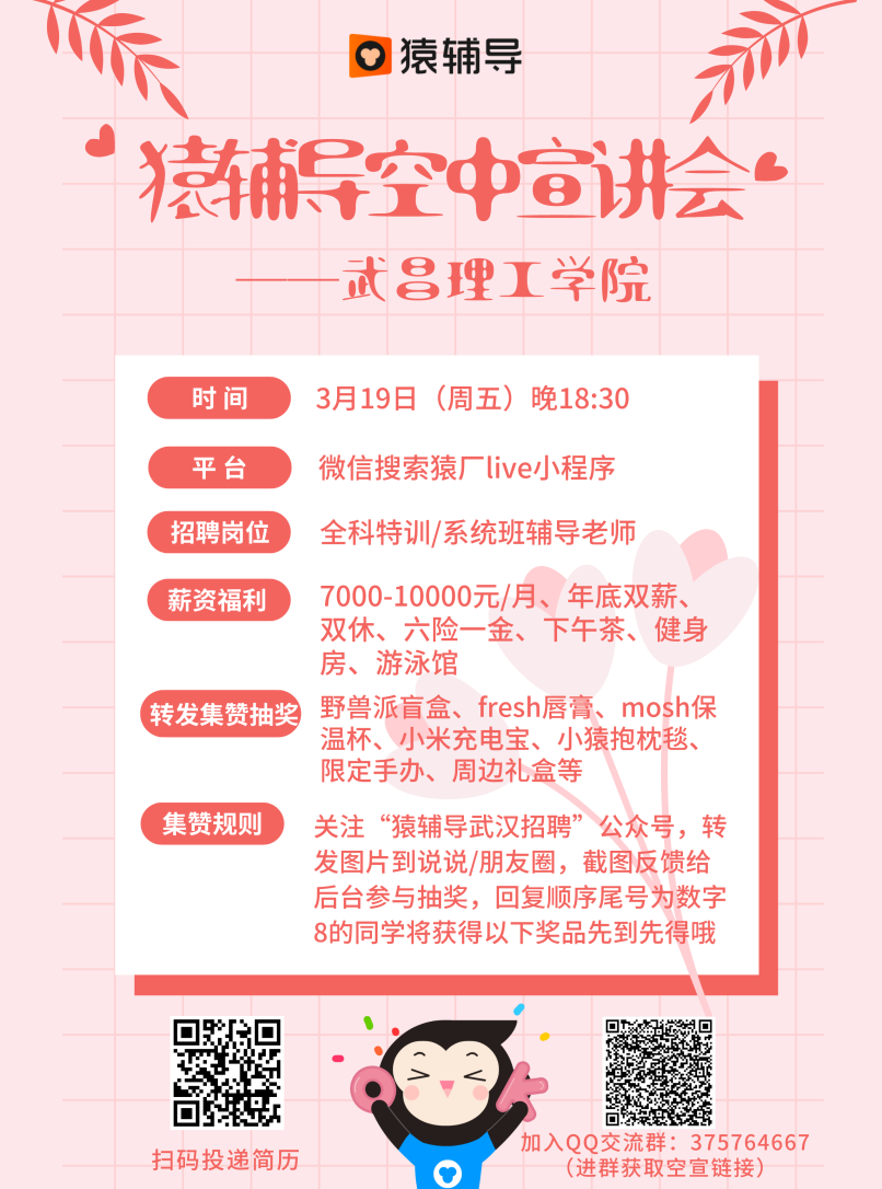 扫码关注公众号 “猿辅导武汉招聘” ,截图反馈后台直接参与抽奖哦!
