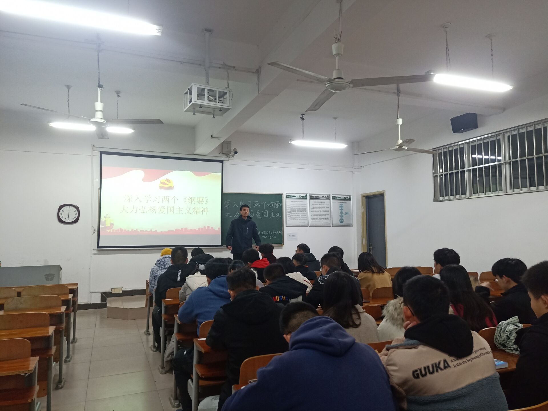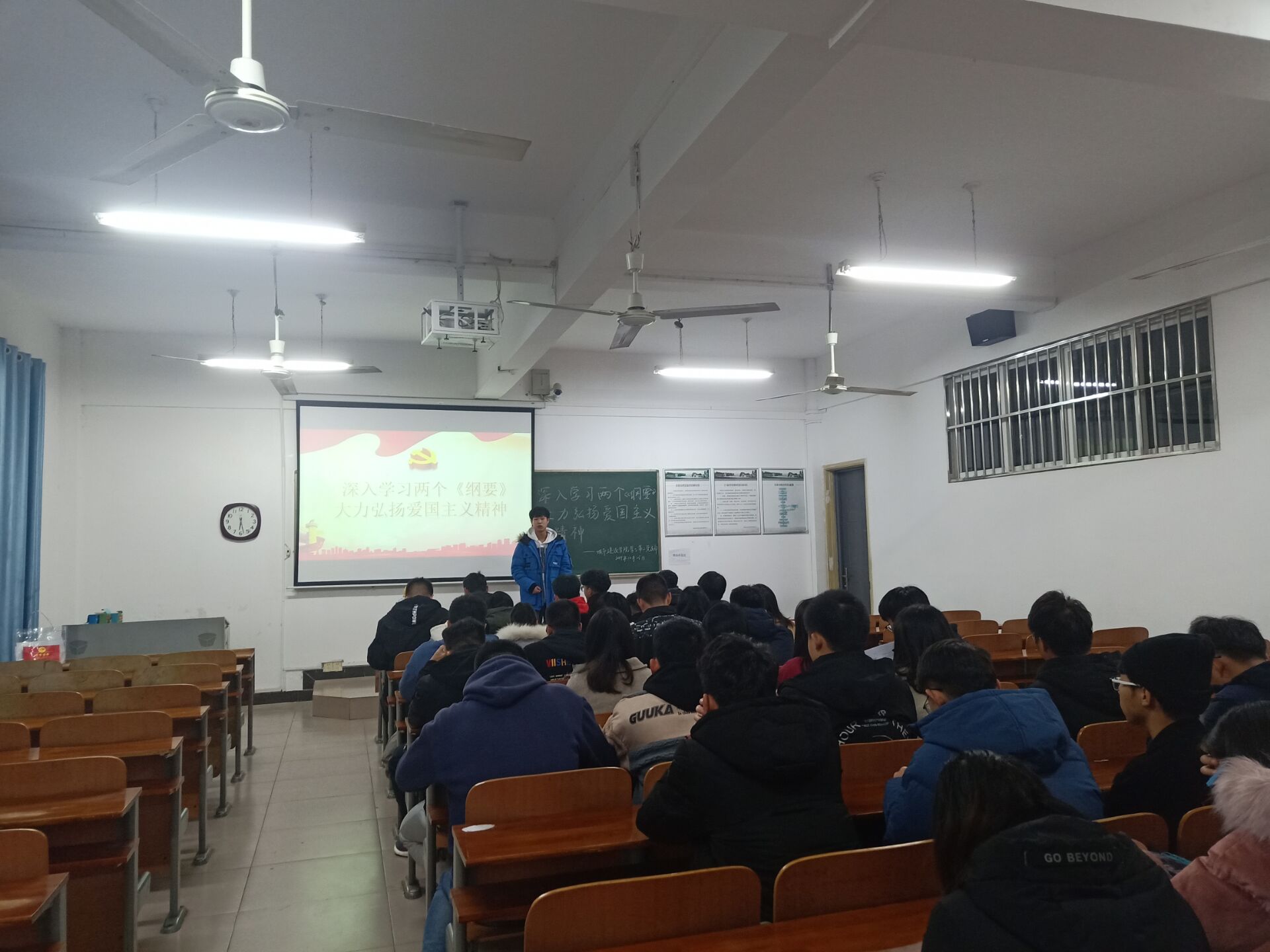 此次党日会主题为“深入学习两个《纲要》,大力弘扬爱国主义精神”,支部全体党员、预备党员、积极分子、均参与了此次会议,各位同志的积极参与为本次支部党日会的召开营造了良好的氛围。此次会议是新一批的积极分子进入支部后参与的第一次会议,他们的到来为支部增添了巨大的活力。会议开始前,此次的积极分子代表-来自装饰1901班的韩珂岩同志、夏顺悦同志分别上台发言。他们谈到了自己进入支部以后的一些心得体会,以及对未来的美好憧憬。积极分子韩科岩同志说道:“我希望在接下来的工作中可以继续向优秀的学长学姐学习,弥补自己的不足,积极向党组织靠拢,成就一个更加优秀的自己。”而后,支部正式党员蔡益丰同志开始了对本次支部主题党日会需要学习的内容的讲授。他深入的谈到了道德建设以及爱国主义建设对于每个公民的重要性,也例举了很多平时生活中发生的小事,从中更好的帮助支部同志理解其内涵。会议最后,蔡益丰同志对于2019年表达了自己的一些感想。“作为即将离校的支部老同志,我很遗憾自己不能与最新一批的同志进行更多的学习了解了,我们支部的每位同志都很优秀,希望接下来的日子里,你们要不断的丰富自己充实自己!加油吧!”