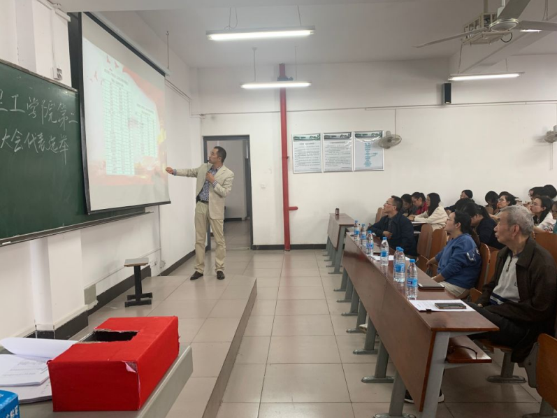 (城建党总支 杨岚 报道)为更好地学习和贯彻党的十九大精神,坚定和明确使命,11月11日下午一点四十,城市建设学院党总支在城市建设学院515教室召开“第二次代表大会代表选举”和““两委”委员候选人第二轮推荐大会”,61名正式党员代表出席了大会,城市建设学院党总支书记陶新荣同志主持会议。