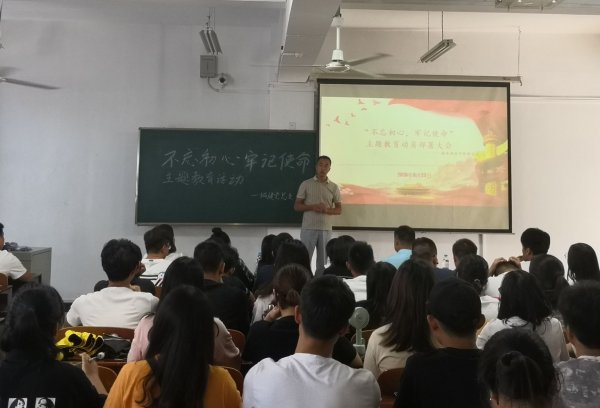 (城市建设学院 党总支 陈慧敏 报道) 2019年9月23日下午3时,城市建设学院党总支于城建514隆重举行“不忘初心、牢记使命”主题教育。该活动由武昌理工学院巡回指导组陈邦玉处长莅临指导,城市建设学院党总支书记陶欣荣书记做部署安排具体工作,城市建设学院全体师生党员共参加了本次活动,活动由中共预备党员董星瑶同志主持。