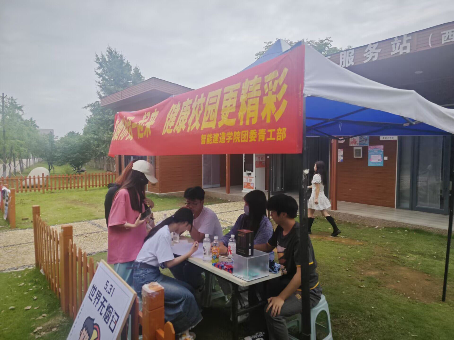 (智能建造学院学工第二党支部 徐豫帆 报道)在5月31日下午12:30时,中共武昌理工学院智能建造学院学工第二党支部在西区一站式社区服务站举行了以“控烟你我一起来,健康校园更精彩”为主题的特色活动。