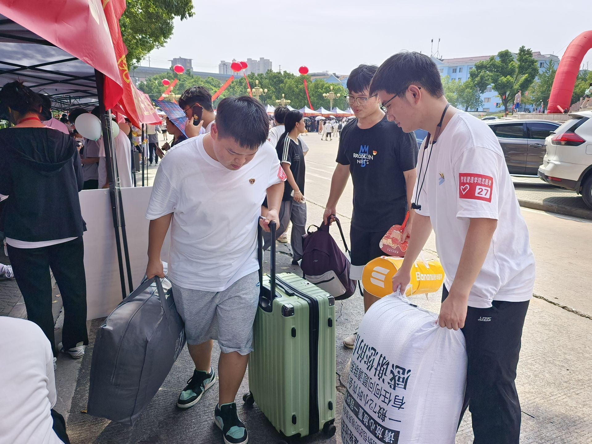 为了确保迎新工作的顺利进行,智能建造学院党总支书记蒋国华、团委书记刘欣洁和新生素质导师陈雅琪老师也莅临报到现场,随时为新生及家长答疑解惑。各位素质导师助理和志愿者们更是提前做足准备工作。从如何熟悉校园环境到掌握各项报到流程,每一个细节都经过了精心安排。在迎新当天,志愿者们早早地集合在迎新点,面带微笑,满怀热情地等待着新生们的到来,只为给新生们留下一个温馨、友爱的第一印象。随着众多新生和家长陆续抵达学校,迎接他们的是一群热情洋溢的志愿者。大家化身引路人,一对一地为新生提供行李搬运、路线指引、宿舍安排、校园介绍等全方位服务。他们不仅耐心地解答新生们的疑问,而且主动分享自己在大学的生活经验,让新生们在陌生的环境中感受到了家的温暖。许多新生表示,一开始对大学生活充满未知和紧张,但在志愿者的帮助下,感到非常温暖和安心。家长们也对学校的第一印象非常好,对孩子即将开始的大学生活充满了期待和信心。志愿者们奉献的身影,也成为了报到现场一道美丽的风景线。