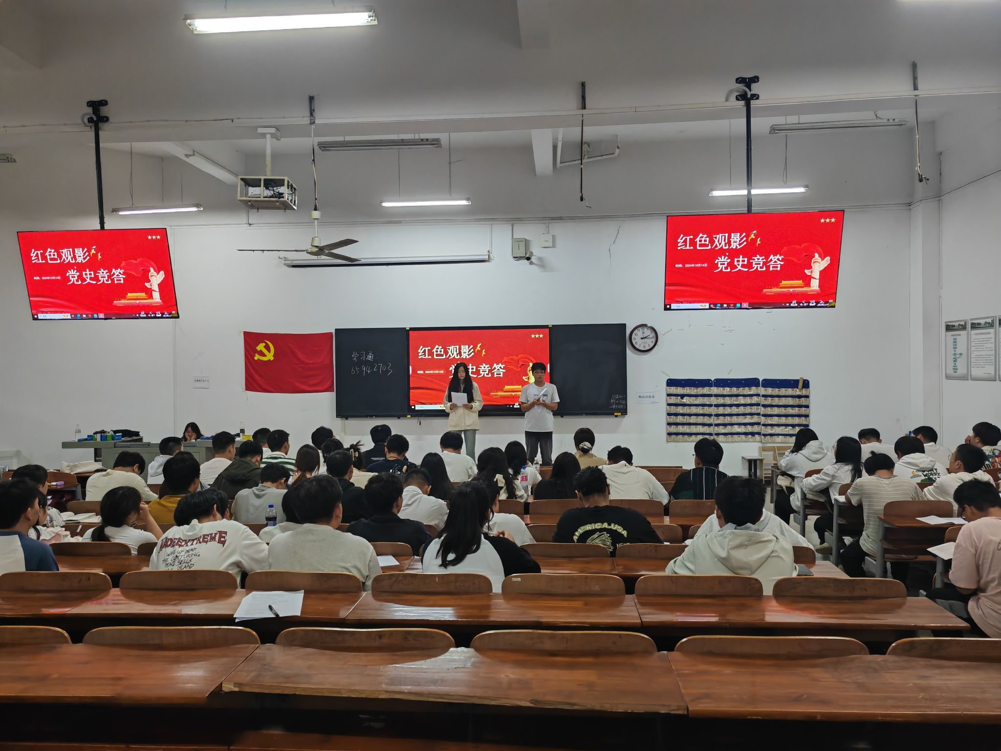 观影结束后,紧接着进入了党建知识竞答环节。此次竞答以学习通抢答的形式进行,题目涵盖了党的历史、党的理论、党的路线方针政策等多个方面。同志们们纷纷拿出手机,登录学习通平台,准备迎接这场智慧的较量。竞答过程中,现场气氛紧张而激烈。经过几轮激烈的角逐,最终按照积分评选出了优胜者,党校培训班班主任为他们颁发了奖品。活动结束后,学员们纷纷表示:此次活动不仅是一次党史知识的竞赛,更是一次党性教育的洗礼。通过参与活动,学员们对党的历史和理论有了更加深入的了解和认识,也更加坚定了自己的入党决心。