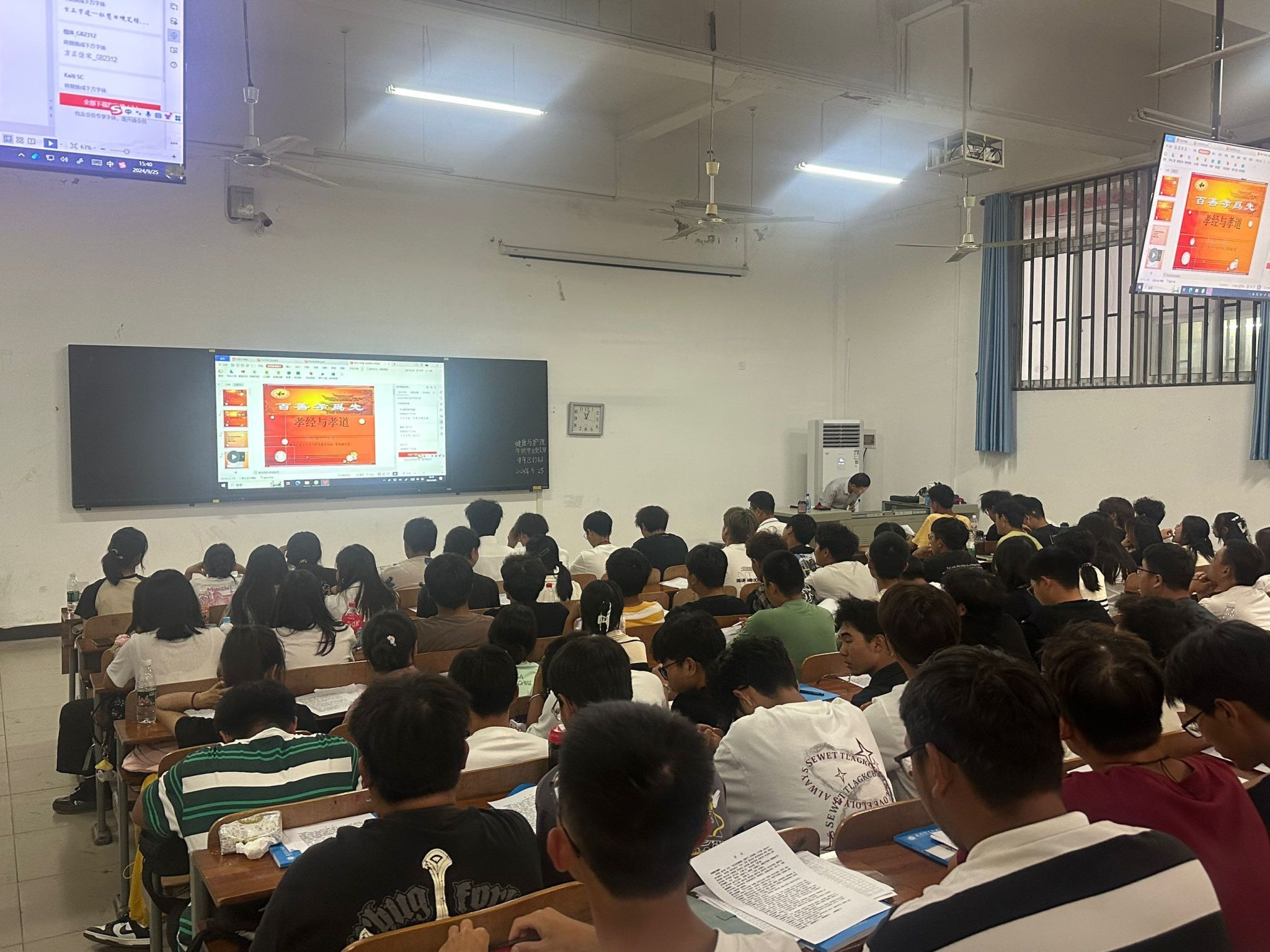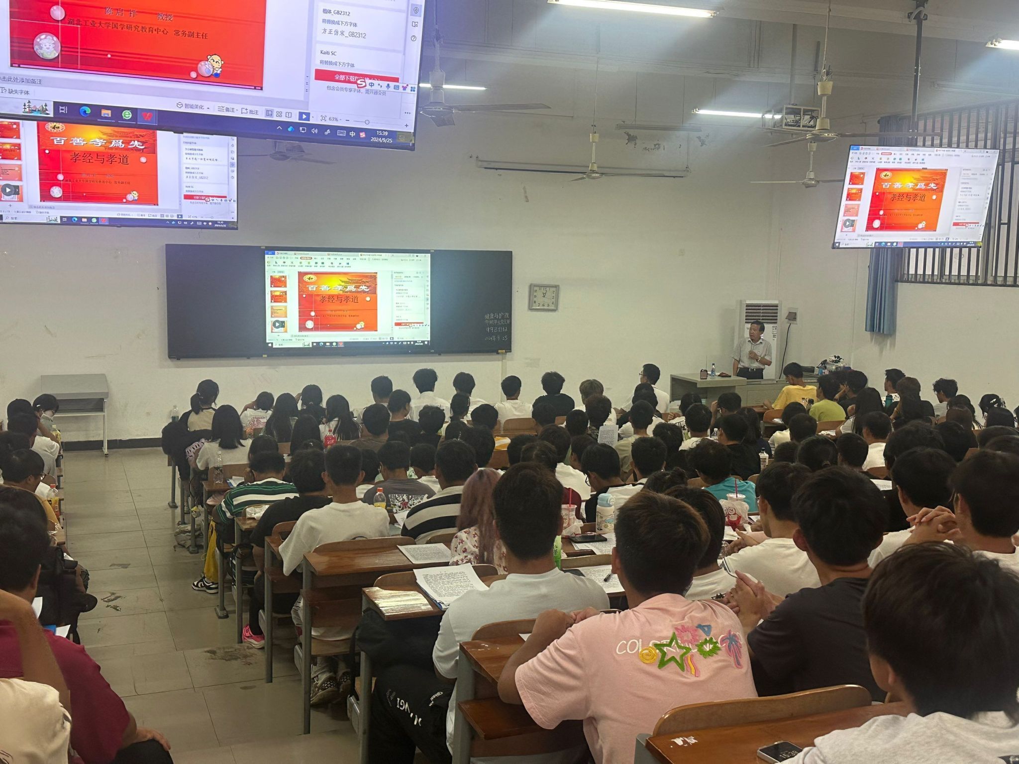 活动伊始,陈启祥教授以深厚的学术造诣和生动的讲解方式,深入剖析了《孝经》这部经典著作。他提到,《孝经》作为儒家十三经之一,蕴含着丰富的孝道思想,不仅是古人践行孝道的指南,更是当代社会构建和谐家庭与人际关系的重要基石。在讲座中,陈教授通过历史故事、经典案例以及现实生活中的生动事例,阐述了孝道在个人成长、家庭和睦以及社会稳定中的积极作用。他强调,孝道不仅仅是对父母物质上的供养,更重要的是精神上的关怀与敬重,如 “孝子之事亲也,居则致其敬,养则致其乐,病则致其忧,丧则致其哀,祭则致其严” 所表达的那样,从日常生活的点滴细节中体现对父母的敬爱。此次讲座引发了2024届新生们的强烈共鸣。许多新生表示,在现代快节奏的生活中,往往忽略了对父母的陪伴与关心,通过这次讲座深刻认识到孝道的重要性,决心在今后的生活中更加用心地践行孝道。