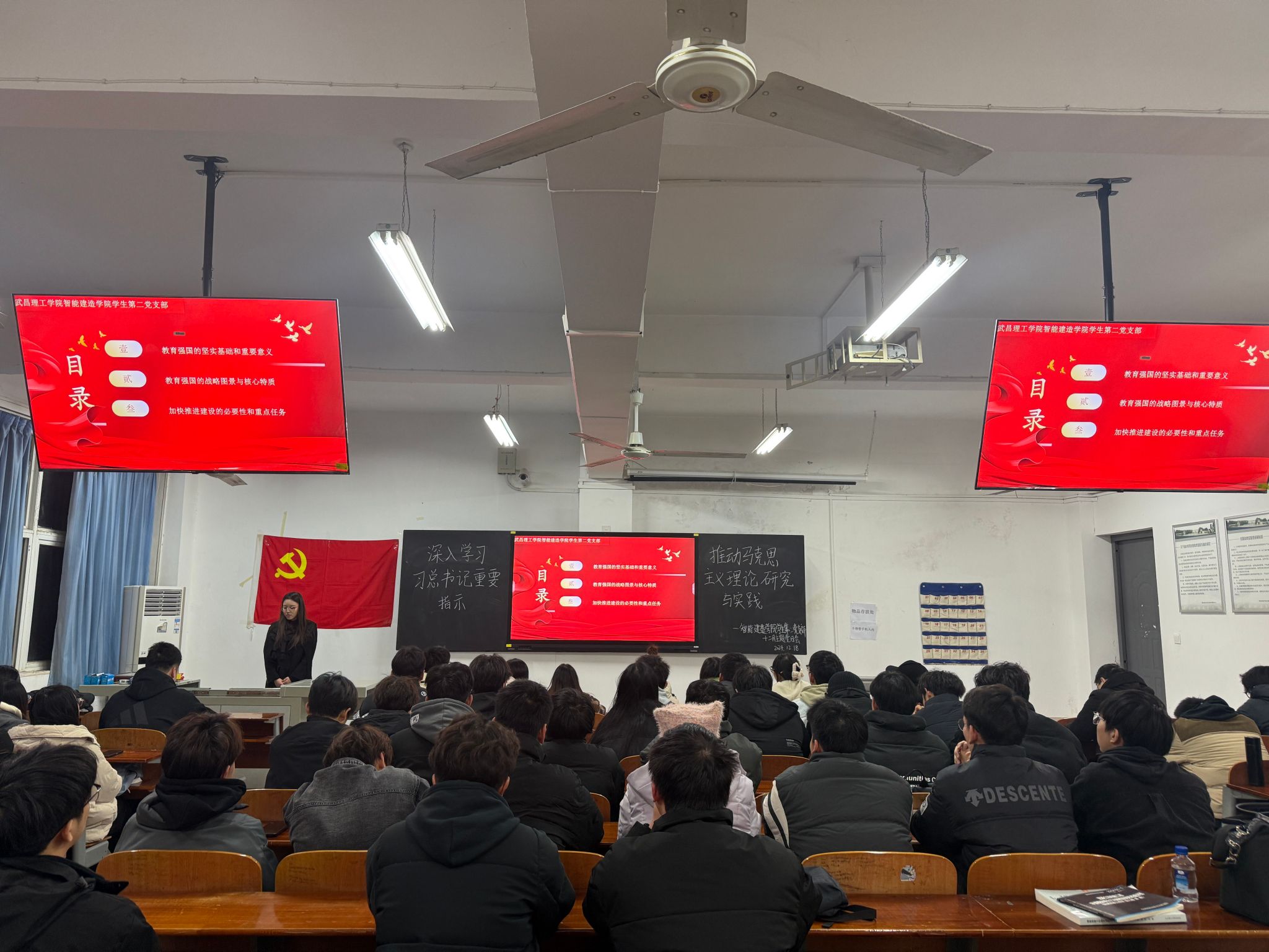 (智能建造学院学生第二党支部 刘昊 报道)为了深入学习教育强国的多方面内涵,提升同志们对教育强国建设的认识与理解,增强同志们在教育强国建设中的使命感与责任感,2024年12月18日晚上18时,智能建造学院学生第二党支部在智能建造学院514教室召开以“奋力书写新时代新征程,教育强国建设崭新篇章”为主题的十二月党日会。