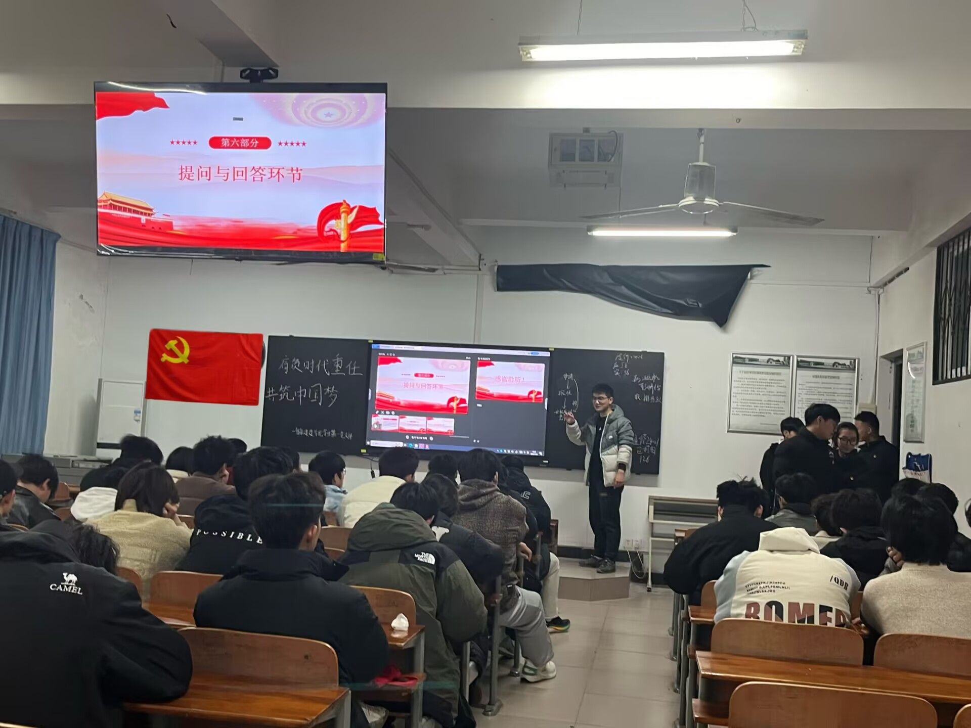 (智能建造学院学生第一党支部 沈子涵 报道)在中华民族伟大复兴的征程中,为了深入学习贯彻党的精神,激发青年学生的政治热情,积极引导广大青年学生向党组织靠拢。武昌理工学院智能建造学院学生第一党支部于2024年12月8日18时在智能建造学院508教室开展了主题为“肩负时代重任,共筑中国梦--加入中国共产党”的宣传活动。