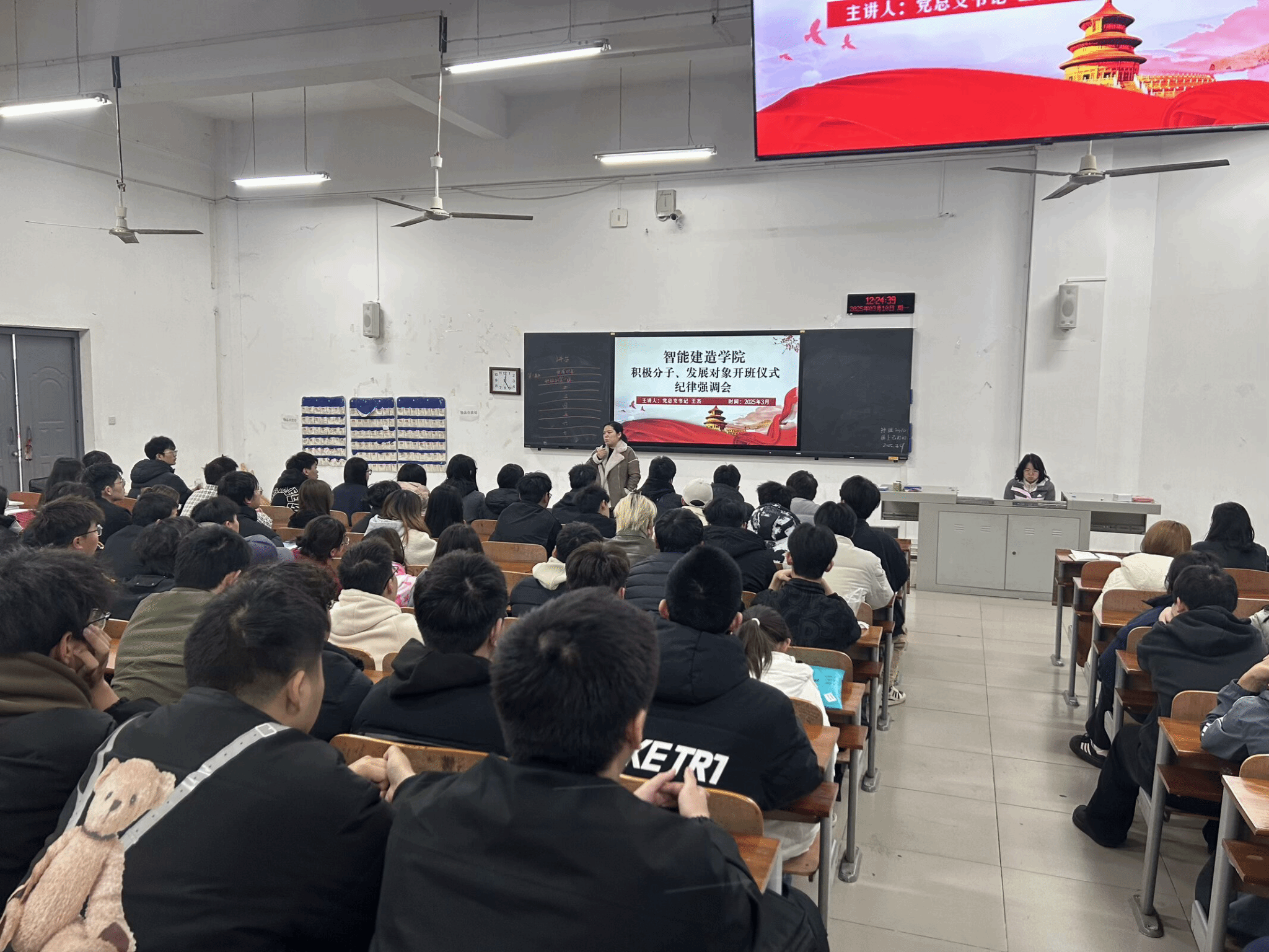 (智能建造学院党总支 阮靖皓 报道)为提升党校学员纪律意识,强化其党性修养,于2025年3月10日12:15分,智能建造学院党总支在智能建造学院115教室开展了党校学员纪律研讨会暨开班仪式。智能建造学院党总支书记王杰以及各学生党支部书记出席了本次活动。