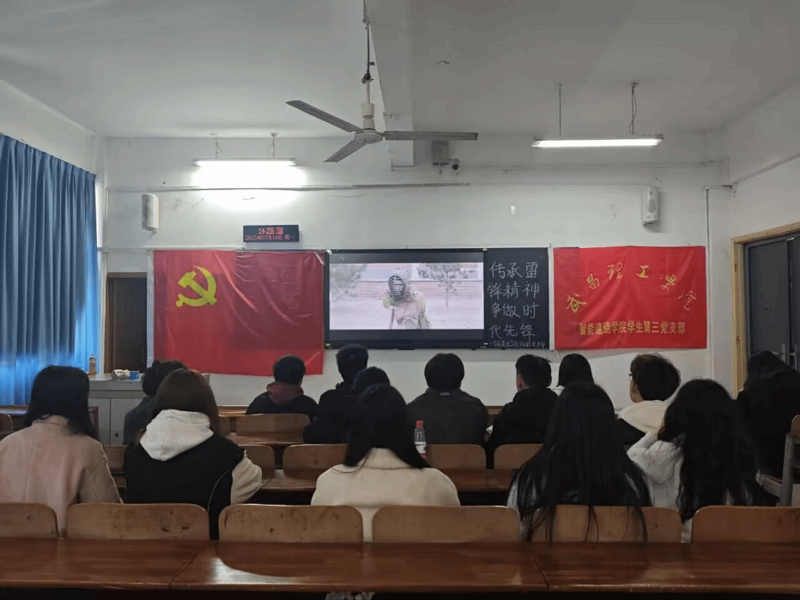 (智能建造学院学生第三党支部 王欣瑶 报道)在春风和煦、万物复苏的季节里,为弘扬雷锋精神,激发青年学生的社会责任感与使命感,智能建造学院学生第三党支部于2025年3月10日在智能建造学院403教室成功举办了一场以“传承雷锋精神,争做时代先锋”为主题的观影活动。此次活动旨在通过观影的形式让雷锋精神在新时代大学生心中生根发芽,激励广大学子积极投身社会实践,成为新时代的先锋力量。