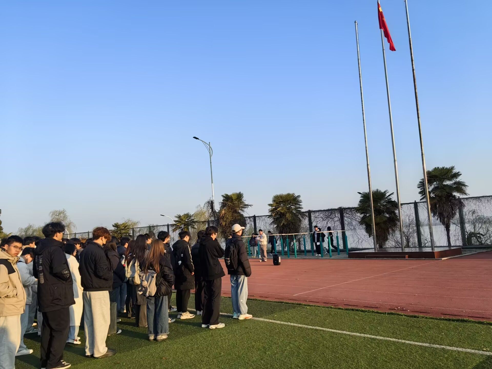(智能建造学院学生第一党支部 孟繁轩 报道) 为了弘扬爱国主义精神,智能建造学院在2025年3月17日7时,在东区操场举行升旗仪式,智能建造学院学生第一党支部部分成员参加了此次升旗仪式,伴随着初升的朝阳,同学们整齐列队,怀着崇敬的心情,共同见证了这一庄严时刻。