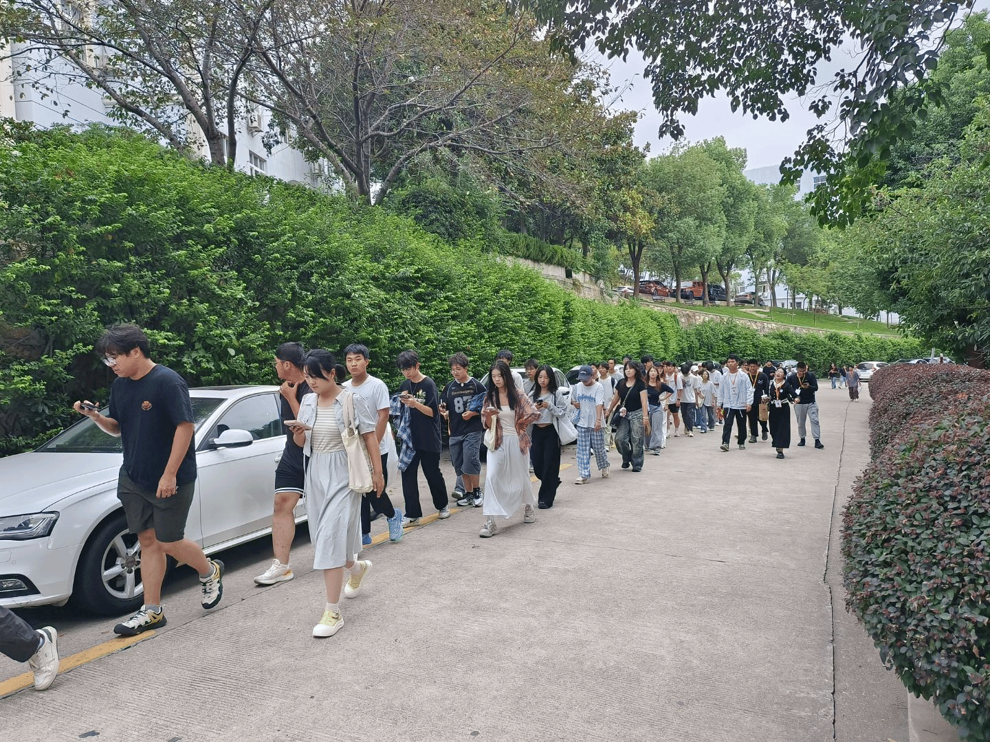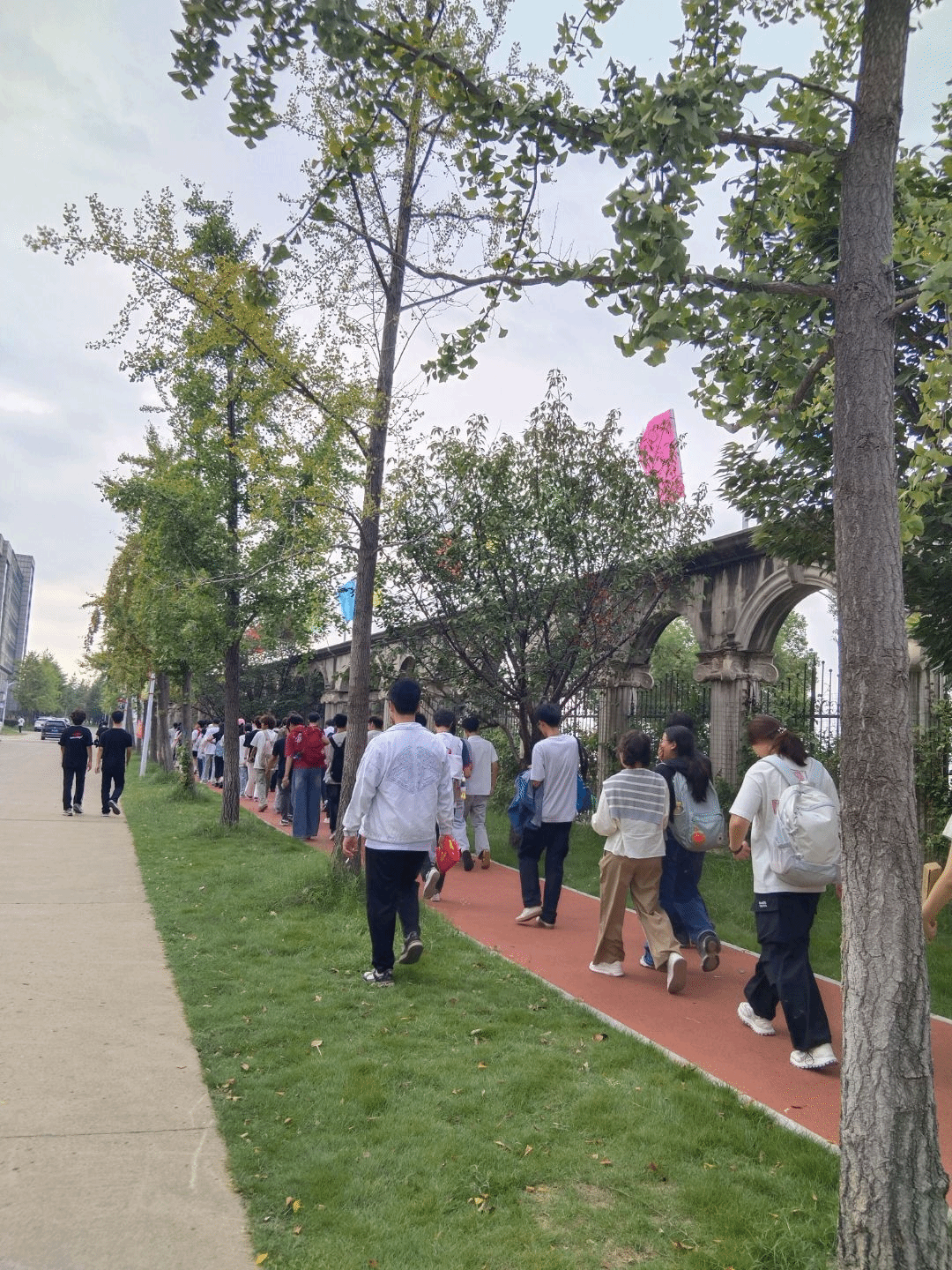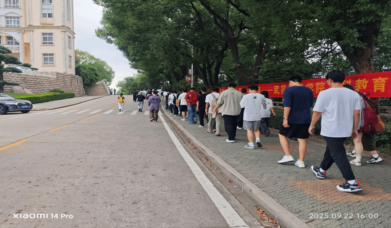 随着校园参观的正式启程,队伍从智能建造学院门口出发,首站途经樱园食堂,结合食堂实景,向新生详细介绍了楼层功能分布。随后,队伍沿“光明顶”路段前行,沿途经过多个学院,直至学校东大门。沿途中,姜家宝同志结合学校的办学理念,向新生们介绍了学校特色的素质教育实践,帮助大家更好的了解学校的学习安排。