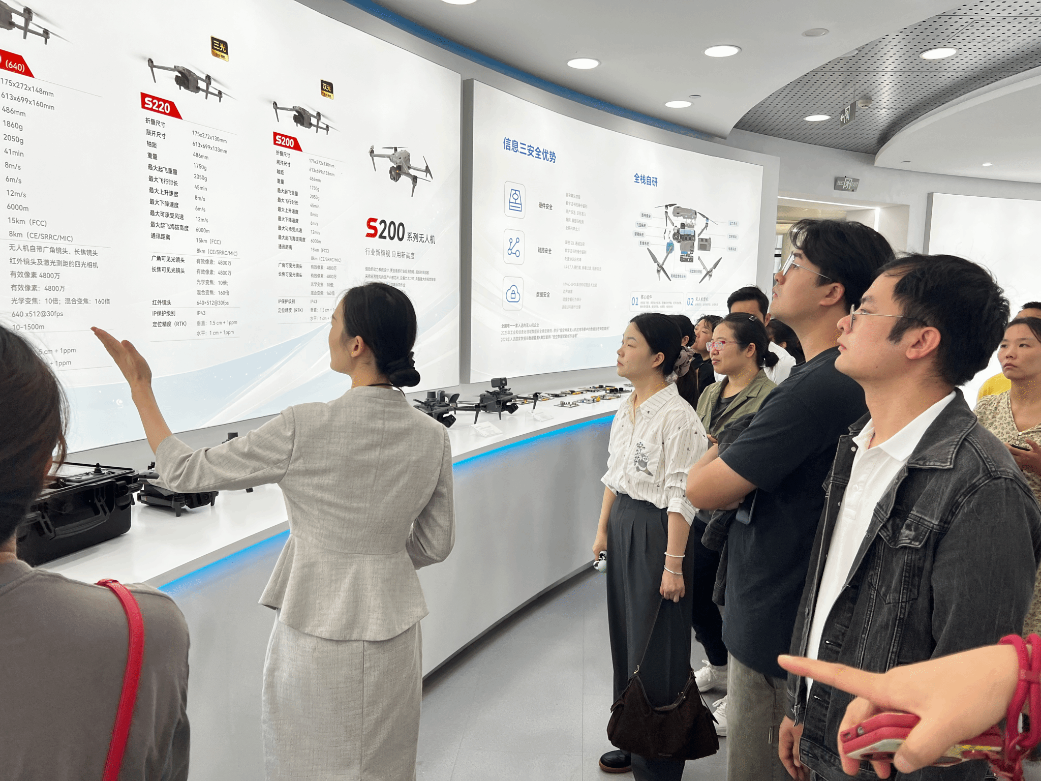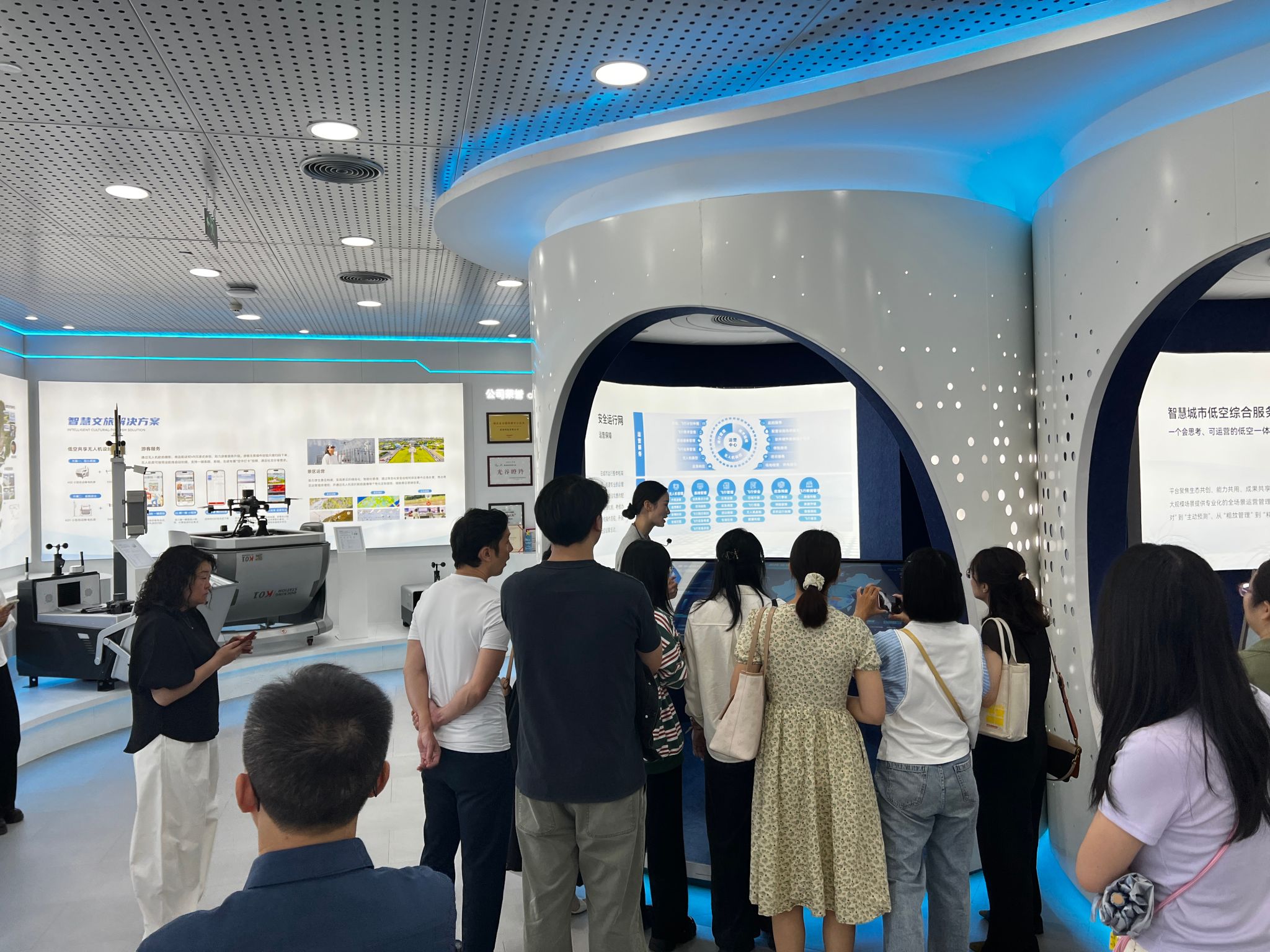 普宙科技负责人带领党员教师参观了无人机自动机库、空天地一体化指挥平台及多载荷协同作业演示。在普宙科技展厅,教师们还深入了解到“空天地一体化智慧城市”系统解决方案。该方案以物联网、AI、大数据、5G等技术为底座,依托无人机、自动机库、UVER智能管控平台等设备,构建全自动空中数据采集与事件处理系统,可广泛应用于消防、交通、环境监测、城管、城建等多个领域,实现“一机多用、全域覆盖”。让老师们零距离感受到“低空+AI+大数据”带来的治理革命和产业机遇。