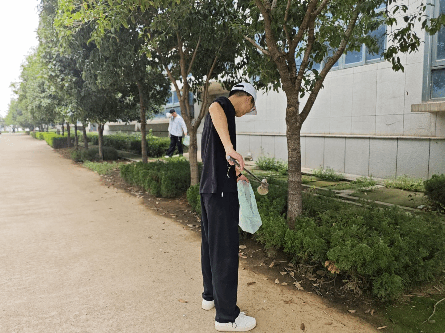在清扫过程中,面对绿化带内难以清理的杂物,同志们徒手拨开灌木枝蔓,仔细将隐藏其中的垃圾一一捡拾干净。部分学生还主动加入清扫队伍,形成了“党员带头、群众参与”的良好氛围。经过近1小时的集中整治,学院周边环境焕然一新,路面干净整洁,绿化带内无杂物堆积。参与活动的党员同志徐扬表示:“此次活动不仅改善了学院周边环境,更让大家在实践中强化了环保意识和责任担当。未来,将继续以实际行动践行使命,带动更多人参与到生态环境保护中来,共同守护地球家园。”