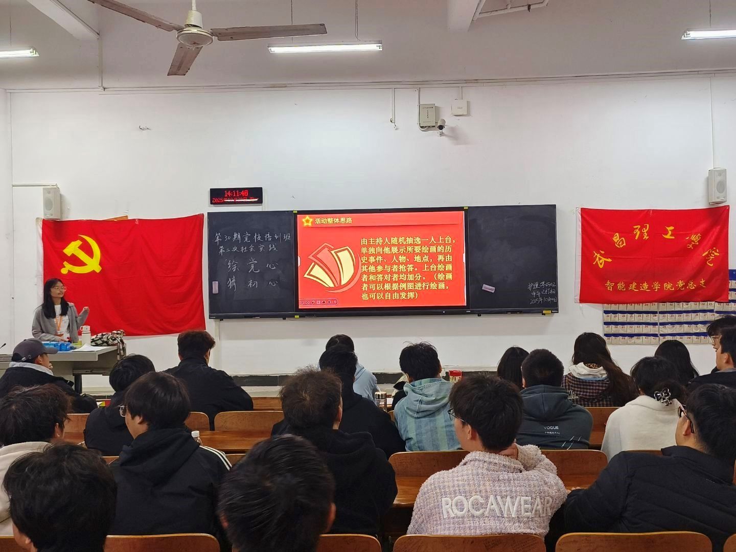 (智能建造学院党总支 黄珍琦 报道)为深入贯彻落实习近平总书记关于“把红色资源利用好、把红色传统发扬好、把红色基因传承好”的重要指示精神,破解党史理论学习“枯燥化”难题,2025年10月20日14:00,智能建造学院党总支在学院115教室,面向第30期党校培训班入党积极分子、发展对象及预备党员培训班的全体成员,开展了以“绘党心,猜初心”为主题的活动。本次活动以创意绘画为纽带,旨在让红色学习焕发新活力。