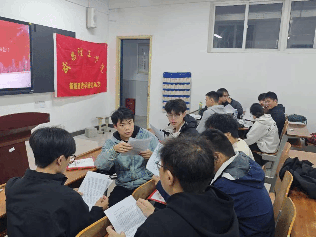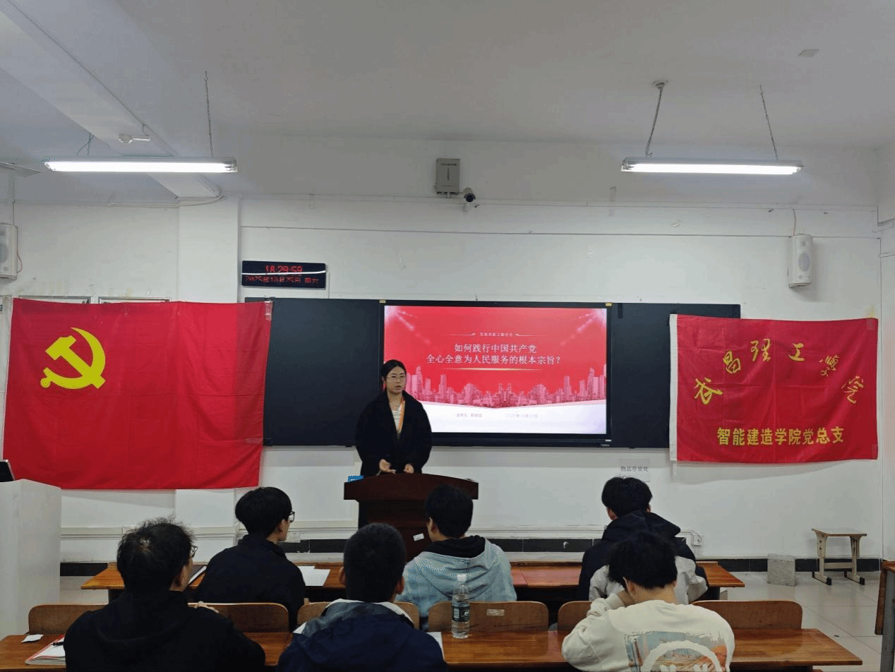 (智能建造学院党总支 陈怡雪 报道)为深入践行中国共产党全心全意为人民服务的根本宗旨,强化发展对象的宗旨意识与行动自觉,智能建造学院党总支于2025年10月25日18:30在409教室组织开展了第30期发展对象第二次主题讨论活动。本次活动以“新时代青年如何践行全心全意为人民服务的根本宗旨”为主题,采用案例分享、小组讨论与代表发言相结合的形式,由党总支党务助理陈怡雪同志主持。