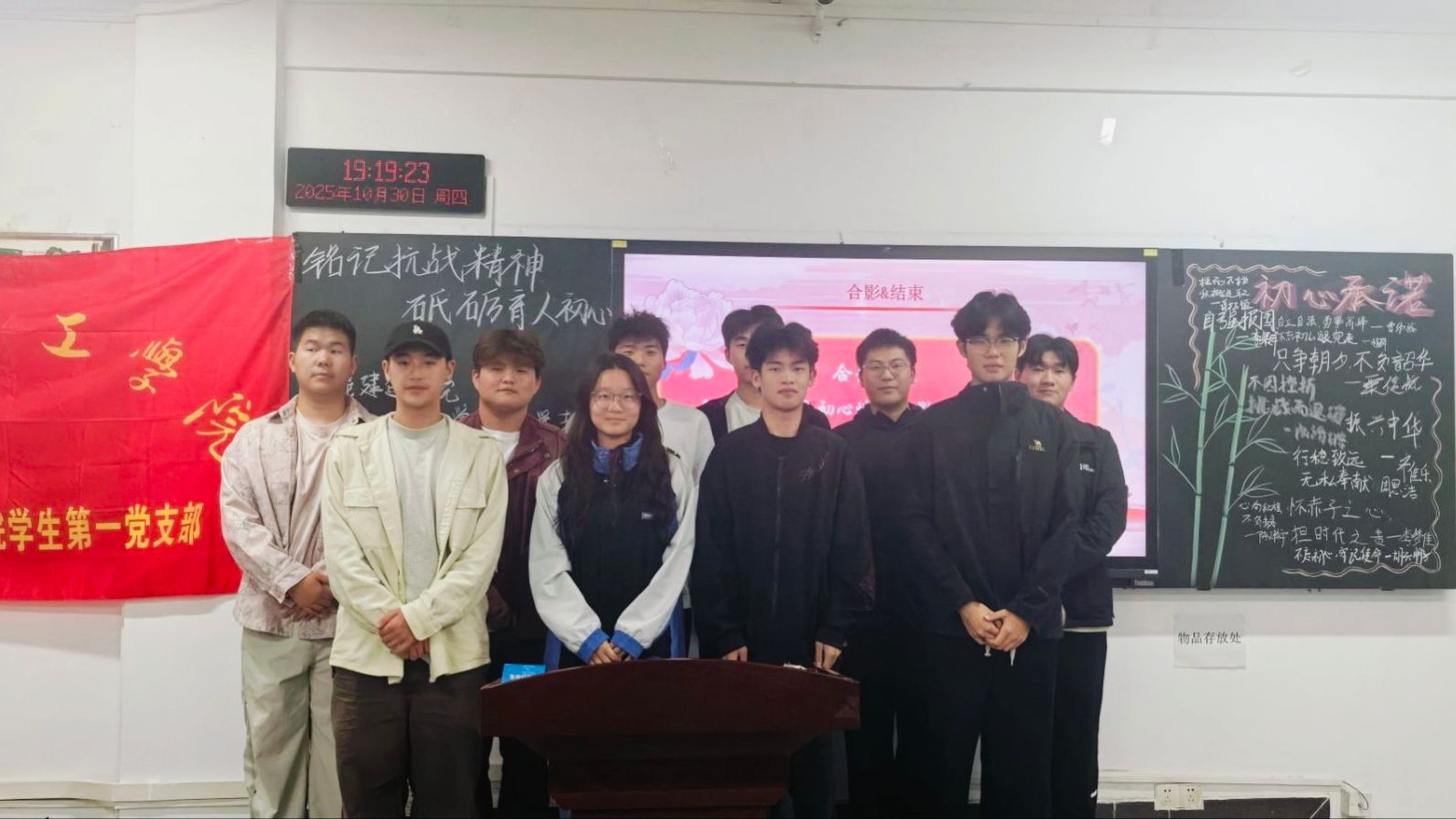 活动伊始,主持人李果洋同志阐述了抗战精神作为中华民族宝贵精神财富的深刻内涵,系统解读了以爱国主义为核心的民族精神在历史发展进程中的重要价值。在场同志集中观看了新华社纪录片《唤名中华》。纪录片以生动的叙事方式,将"天下兴亡,匹夫有责"的爱国情怀从历史记载转化为现实感悟,使在场同志对抗战精神有了更加直观和深刻的理解。全体成员移步至“初心墙”前,郑重签署个人承诺,将理论学习成果转化为个人发展的实际行动。活动尾声,李果洋同志作总结发言,号召全体成员深刻领会抗战精神的核心要义,把从活动中汲取的力量切实落实到个人学习和能力提升中,以高度的责任感和使命感确保学业工作顺利推进。此次活动将观影带来的情感触动与当前个人学习情况相结合,紧密围绕各自的学习进度,深刻阐释了抗战精神中的责任担当与学习任务的内在统一性。