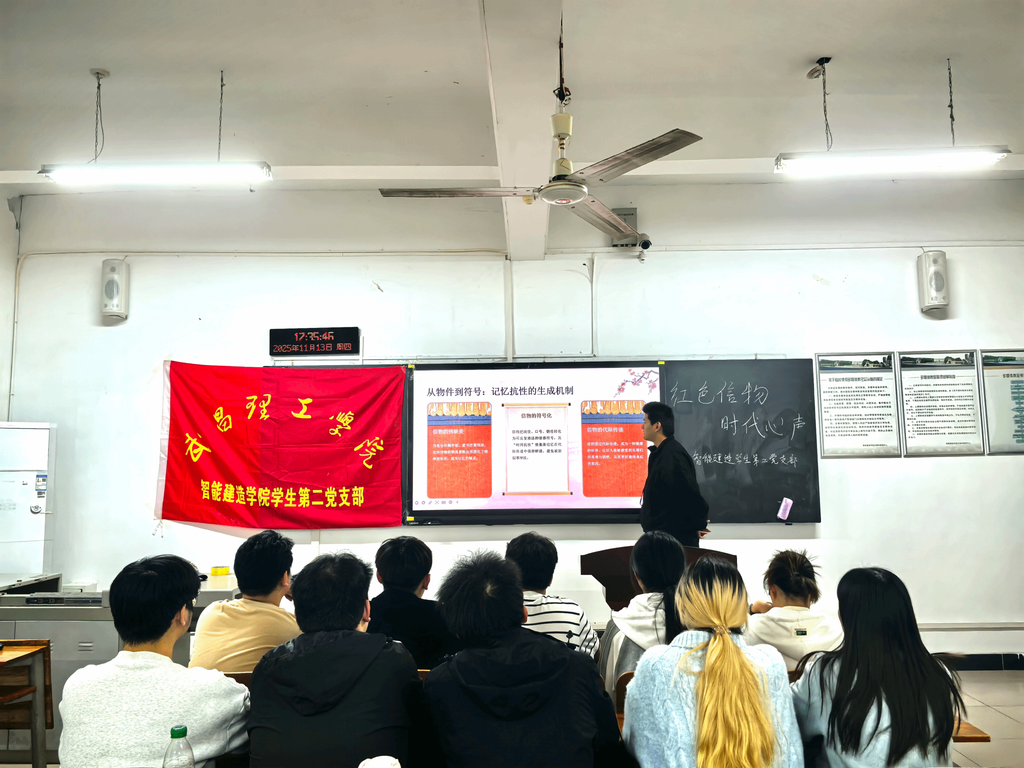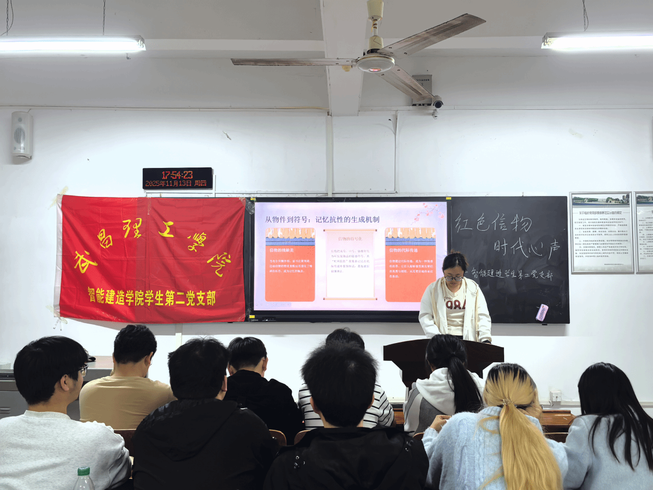 (智能建造学院学生第二党支部 汤阳 报道)为深入学习贯彻习近平新时代中国特色社会主义思想,巩固拓展主题教育成果,将宏大党史叙事转化为可触可感的精神体验,2025年11月13日下午17时30分,智能建造学院学生第二党支部在智能建造学院406教室开展“红色信物,时代心声”主题活动。