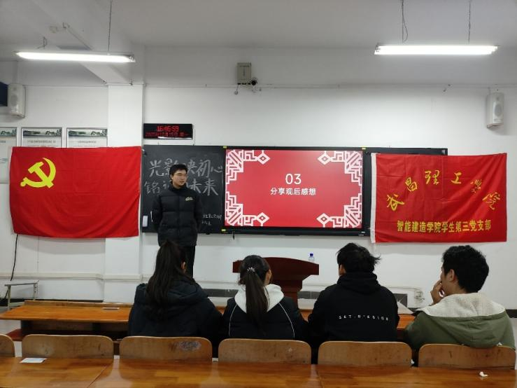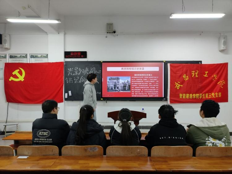 (智能建造学院学生第三党支部 余昊 报道)为增进支部同志对南京本土历史文化的认识,凝聚时代奋进力量,2025年12月15日,智能建造学院学生第三党支部组织开展了“光影印初心,铭记向未来”主题观影活动。本次活动以南京照相馆为切入点,通过影像回顾城市变迁,引导党员同志在光影中感悟历史,在交流中凝聚共识。