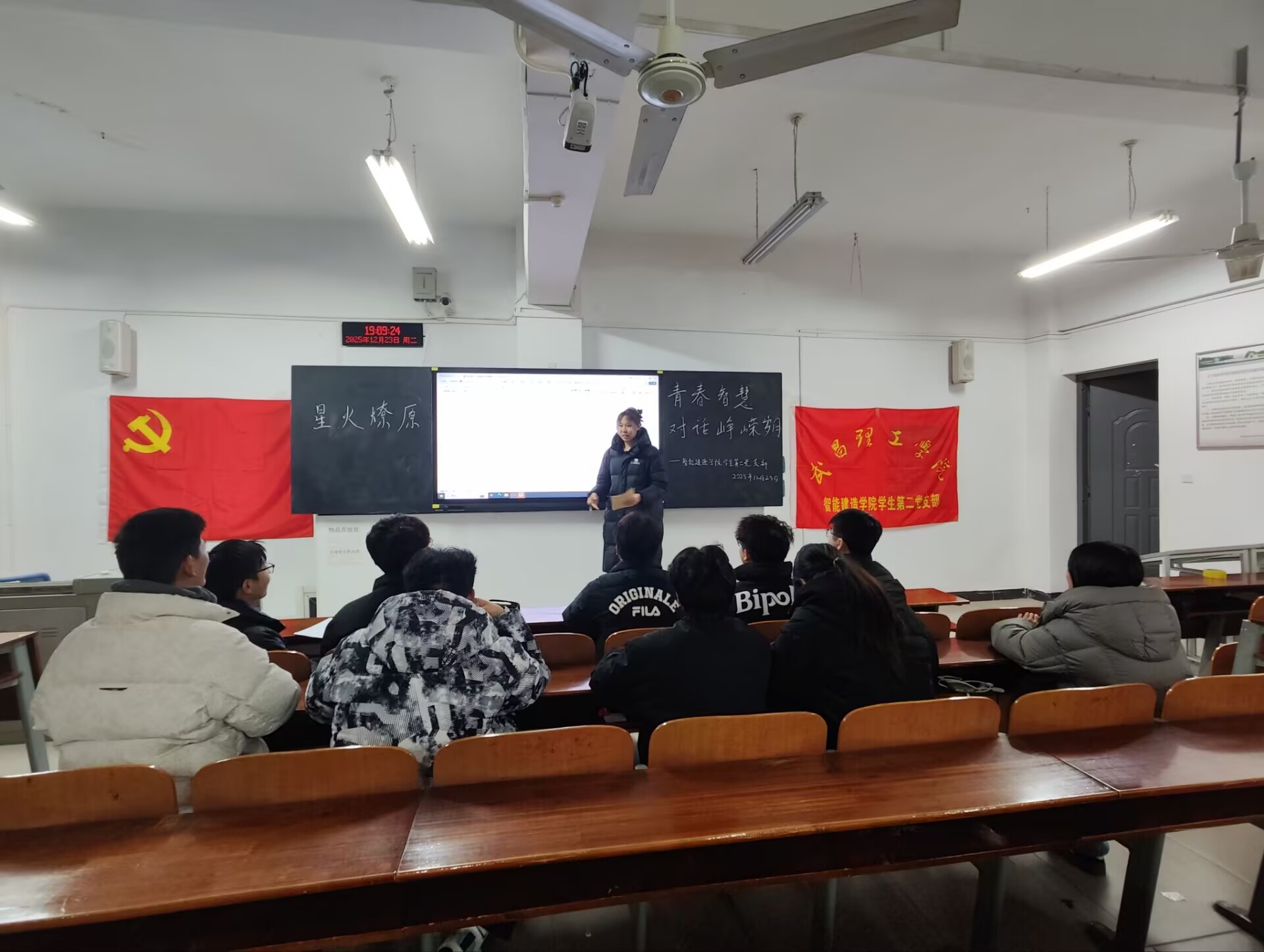 (智能建造学院学生第二党支部 张宇轩 报道)为深入学习贯彻习近平新时代中国特色社会主义思想,巩固拓展主题教育成果,打破传统组织生活的单向灌输模式,引导青年党员从历史“旁观者”转变为智慧“对话者”,2025年12月23日晚18时30分,智能建造学院学生第二党支部在智能建造学院514教室成功举行“星火燎原—青春智慧对话峥嵘岁月”活动。
