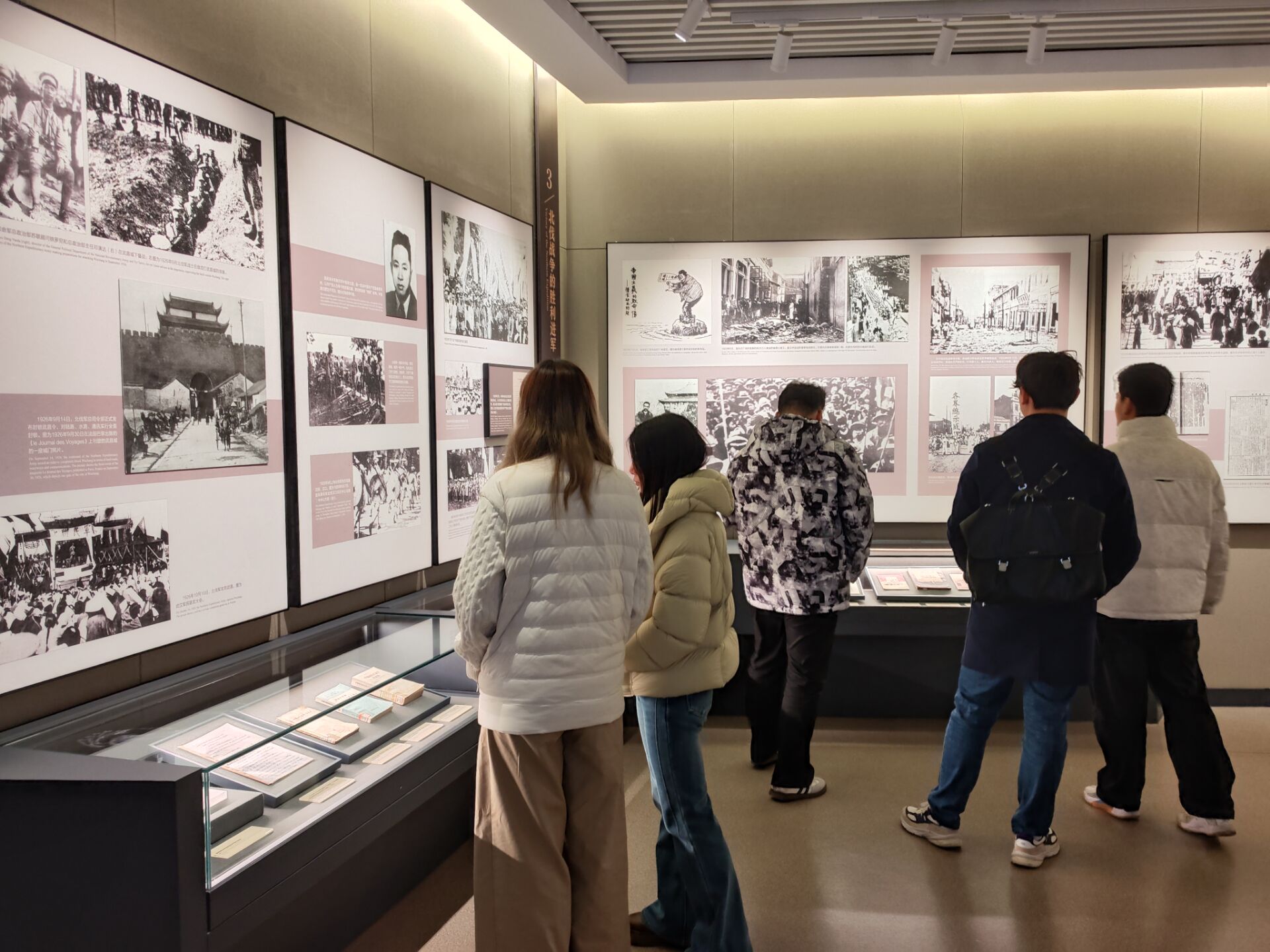 春日的武昌都府堤,青砖灰瓦的中共五大会址庄严肃穆。上午9时许,支部同志们步入这片承载着重大历史记忆的土地。1927年的那个春天,正是在这里,中国共产党在生死存亡的危急关头探索革命道路,首次选举产生中央监察委员会,开启了党的纪律建设新篇章。漫步于复原的会议场景之间,凝视着陈列的原始档案与历史照片,同志们仿佛穿越时空,触摸到那段风雨如晦却又信仰如磐的岁月。展厅内,从"高潮与危机"到"探索与开拓"的叙事脉络,清晰呈现了大革命失败前后党在组织建设、军事斗争、农民运动等方面的艰难探索。