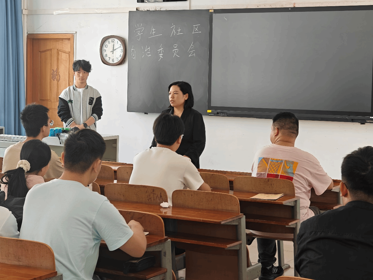 会上,李梓晗老师从工作执行与纪律规范层面提出要求。他指出,社区干部是连接学校与同学的重要桥梁,需担当为核心,扛起服务大家的使命,主动对接同学需求、响应社区号召;工作中要精准定制目标,避免 “无方向式推进”,确保任务有计划、有节点、有成效。同时,他强调各部门需打破信息壁垒,通过多沟通多合作,形成高效协同的工作氛围;更需要严守纪律底线,做到做到严于律己,坚决杜绝违规违纪的行为,以身作则来维护学生干部的形象。