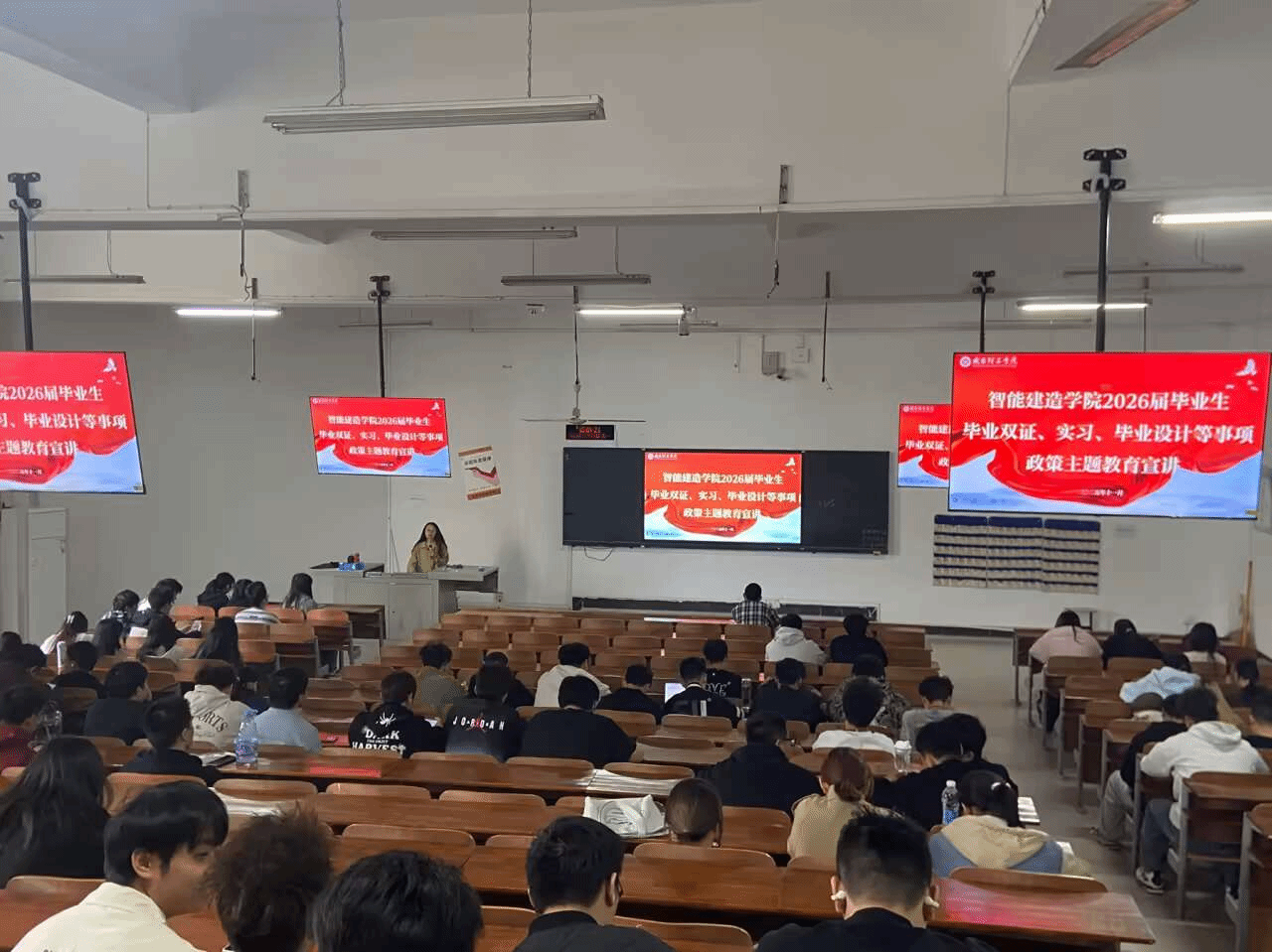 团委网11月5日消息(通讯员 张莉 报道)为切实解决2026届毕业生在毕业资格审核、实习实践、升学就业等方面的核心困惑,帮助学生明确发展方向、做好生涯规划,智能建造学院于11月3日下午14时在114、115教室联合举办2026届毕业生“双证、实习、毕业设计暨未来规划”主题教育宣讲会。智能建造学院教学副院长汤菲、党总支书记王杰、毕业班素质导师及全体2026届毕业生参会,为毕业生厘清毕业要求、明晰发展方向。