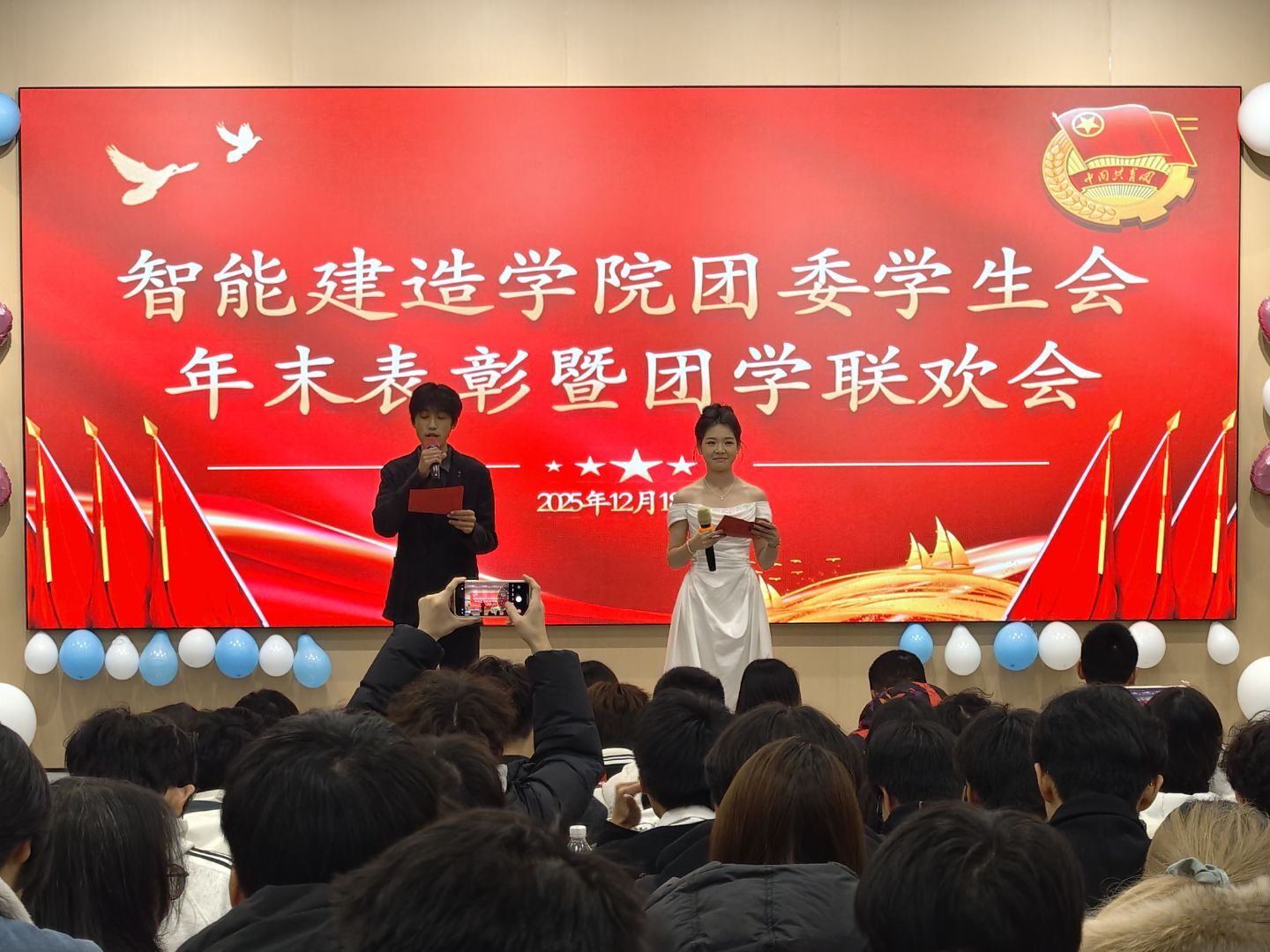 团委网12月19日消息(通讯员 刘锦瑜 报道)为丰富校园文化生活,凝聚团学组织向心力,武昌理工学院智能建造学院于12月18日在116报告厅隆重举行2025年度团委学生会年末表彰暨团学联欢会。智能建造学院团委书记刘欣洁、皮家凤等四位素导老师以及全体院团委学生会干部参加此次联欢会。