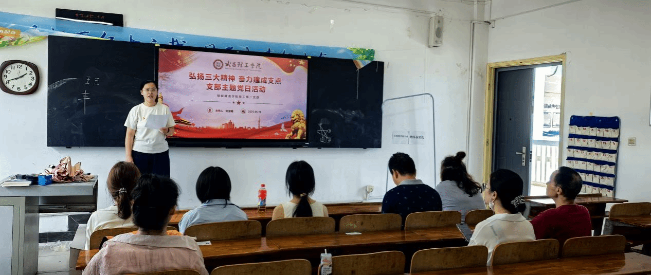 2025年5月26日下午,智能建造学院党支部在403教室举办了以 “弘扬三大精神、锤炼过硬作风、激励担当作为”为主题的支部书记讲党课-支部主题党日活动。智能建造学院教工一支、二支全体党员共同参与此次学习活动。为深入学习贯彻党的精神,加强党员的思想政治教育,智能建造学院于2025年5月26日在403教室成功举办了“支部书记讲党课-支部主题党日活动”。本次活动由学院党支部书记刘玉曦同志主讲,全体党员参加了此次活动。