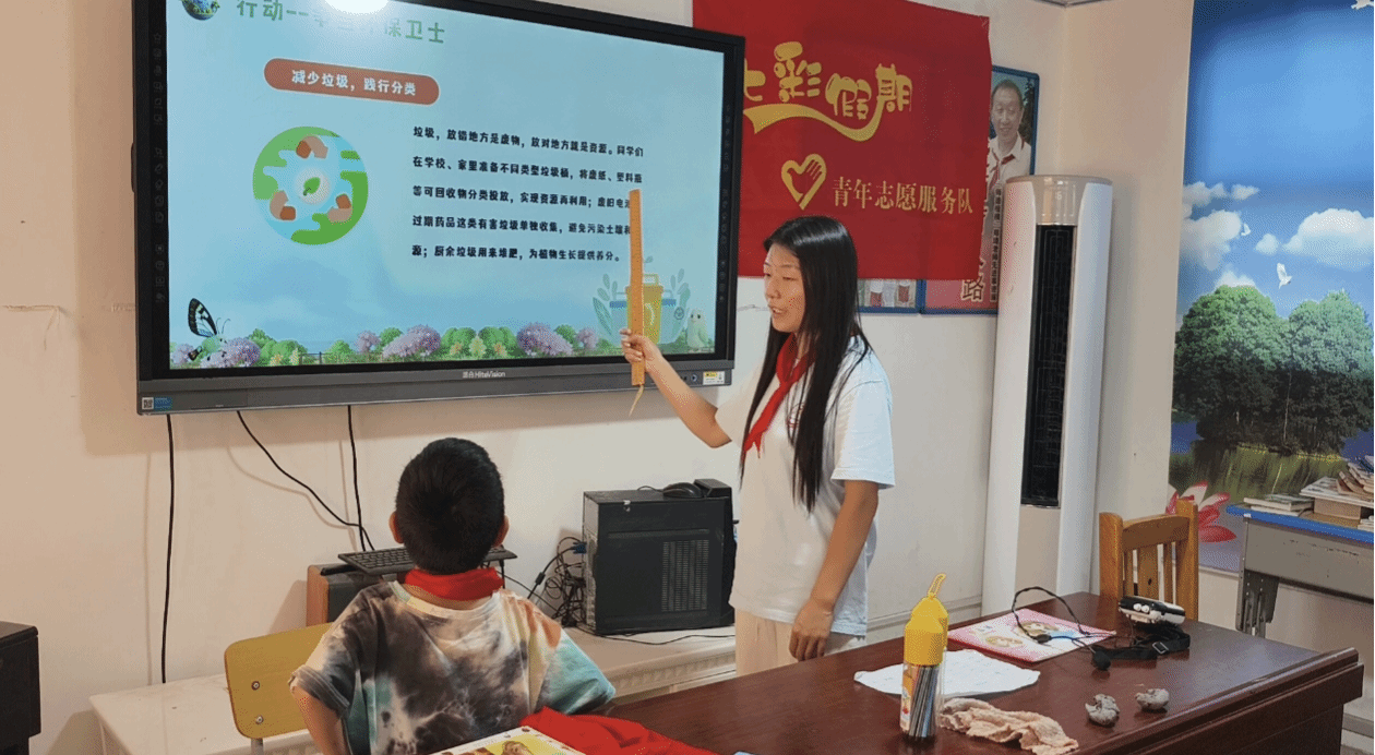 团委网8月7日消息(通讯员 张跃凡 报道)日前,国家高度重视经济社会发展的全面绿色转型。《中共中央 国务院关于加快经济社会发展全面绿色转型的意见》明确指出,要将绿色转型融入经济社会发展全局,构建人与自然生命共同体。在此背景下,武昌理工学院“灯塔计划”心爱筑梦公益团队于8月5日,在郑琦乡村少年宫,开展了一堂别开生面的 “与地球共生,共筑地球梦” 课程,旨在培养孩子们的环保意识,引导他们树立人与自然和谐共生的理念。本次课程积极响应政策号召,通过趣味问答、小组讨论等互动环节,激发孩子们对环保问题的思考,鼓励他们从自身做起,成为环保行动的小使者。