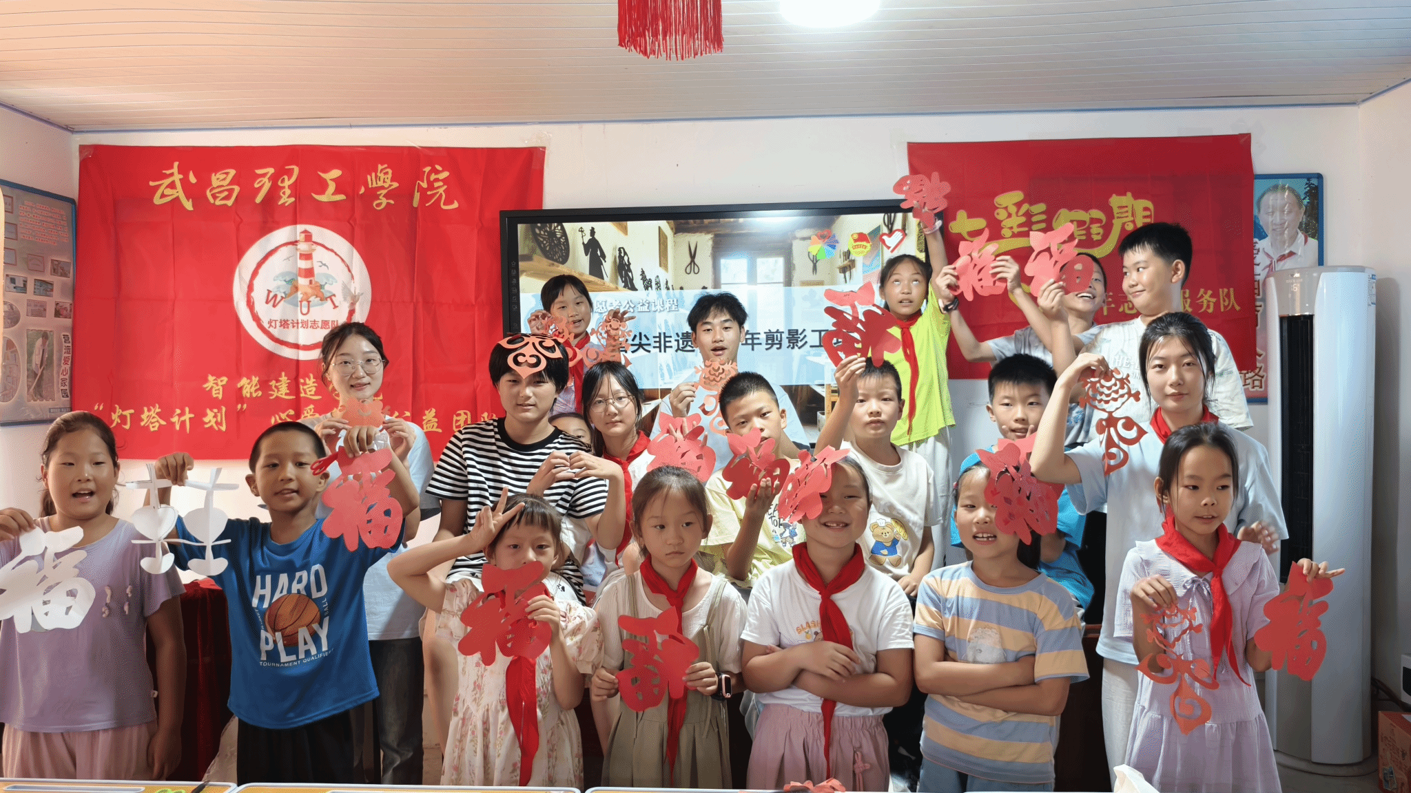 团委网7月23日消息(通讯员 张跃凡 报道)七月的当阳暑气蒸腾,郑琦乡村少年宫内却跃动着比骄阳更炽热的活力。7月21日,武昌理工学院“灯塔计划”心爱筑梦公益团队以四大主题课程为乡村儿童编织知识乐园——“美丽家园我行动”播撒环保理念,“知心姐姐的魔法信箱”搭建心灵桥梁,“玩出来的专注力”锤炼学习能力,而居于核心的“指尖非遗,千年剪影工坊”课程,则以剪纸非遗为媒,在红纸翻飞间奏响文化传承的乐章。四门课程如经纬交织,为孩子们绘就一幅兼具温度、深度与广度的成长图景。