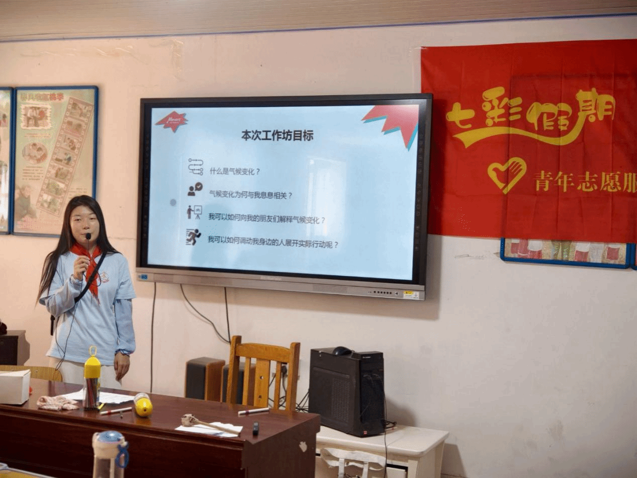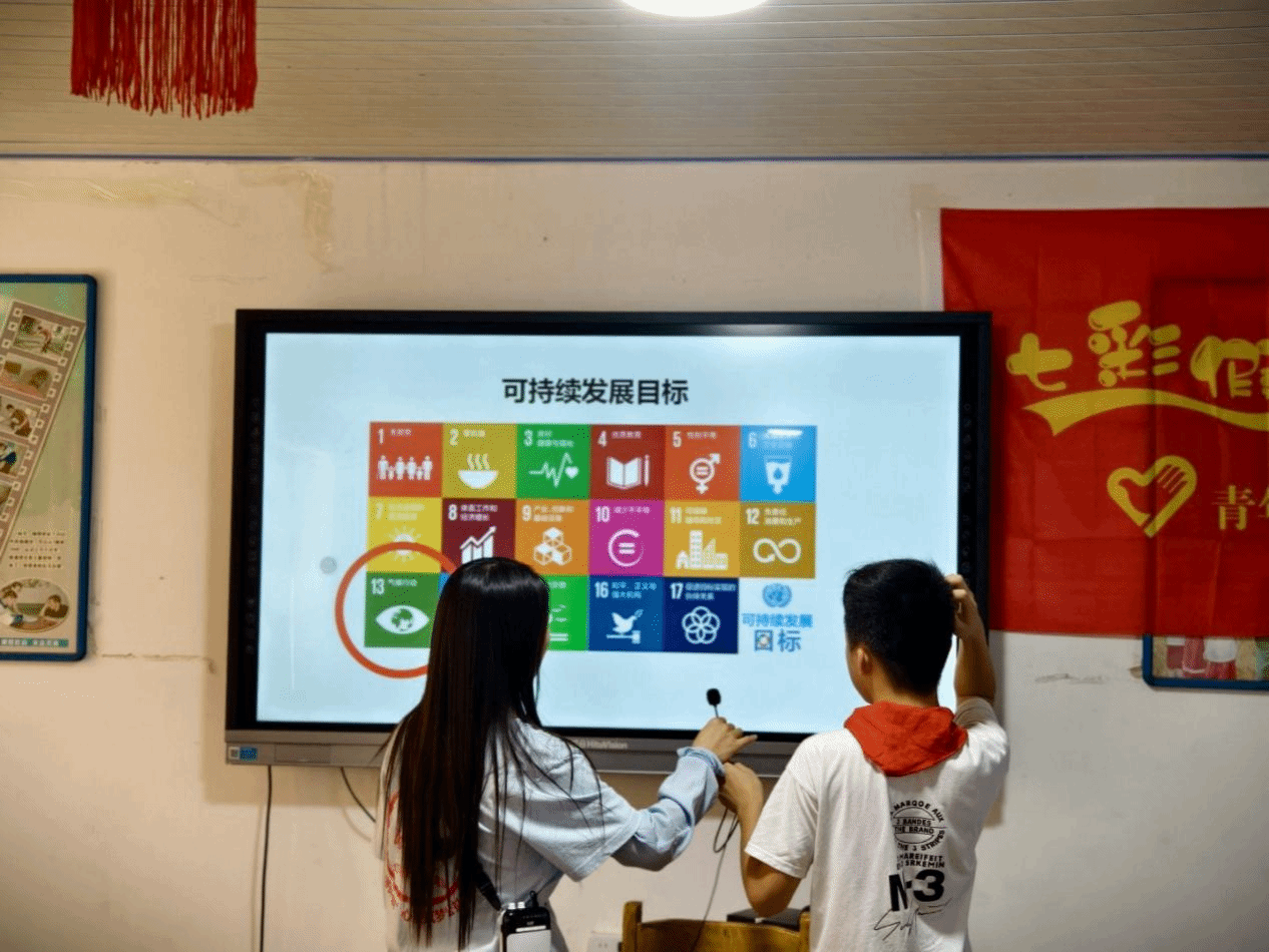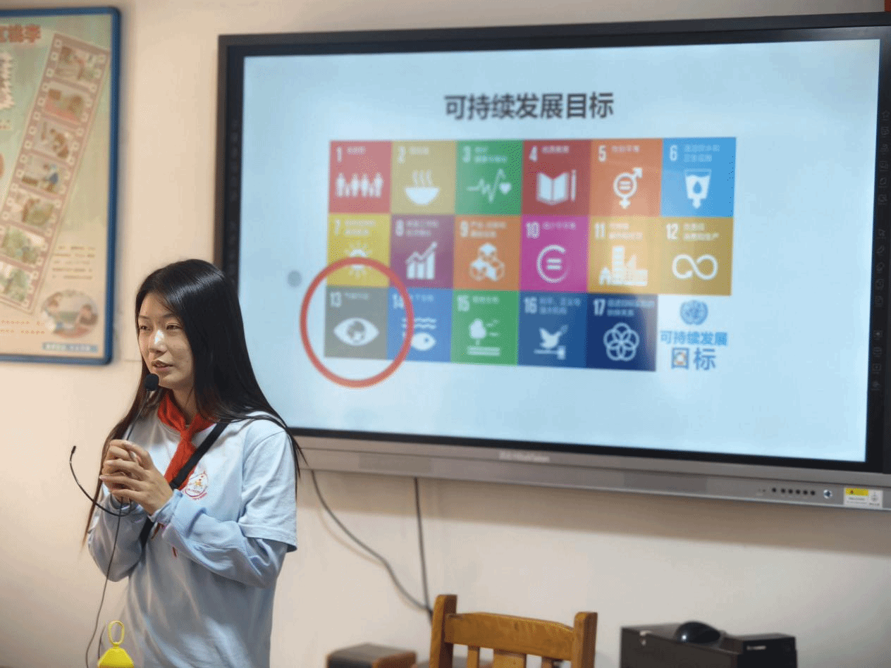 团委网7月25日消息(通讯员 刘若曦 报道 摄影 顾洋洋)为响应国家将应对气候变化作为实现自身持续发展的内在要求的号召,彰显构建人类命运共同体的责任担当。7 月 25 日,武昌理工学院 “灯塔计划” 心爱筑梦公益团队队长张跃凡在当阳市郑琦乡村少年宫开展了一场生动有趣的“气候行动”互动课堂。她带领学生们深入探索SDG13-气候行动的深刻意义,从科学认知层面引导学生理解气候问题,再到赋能实际行动,让学生们在 “知” 与 “行” 的融合中,开启了一场双向奔赴的成长之旅。