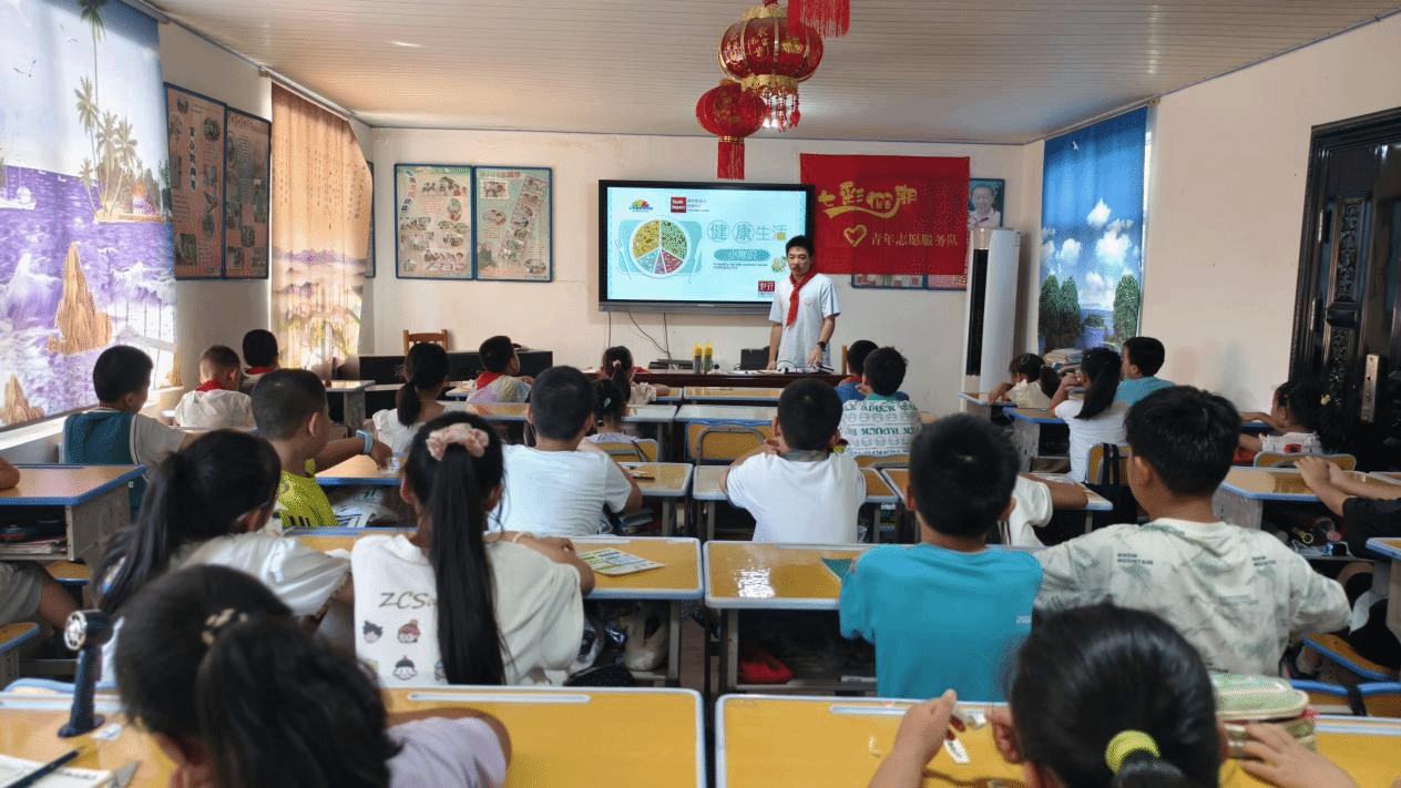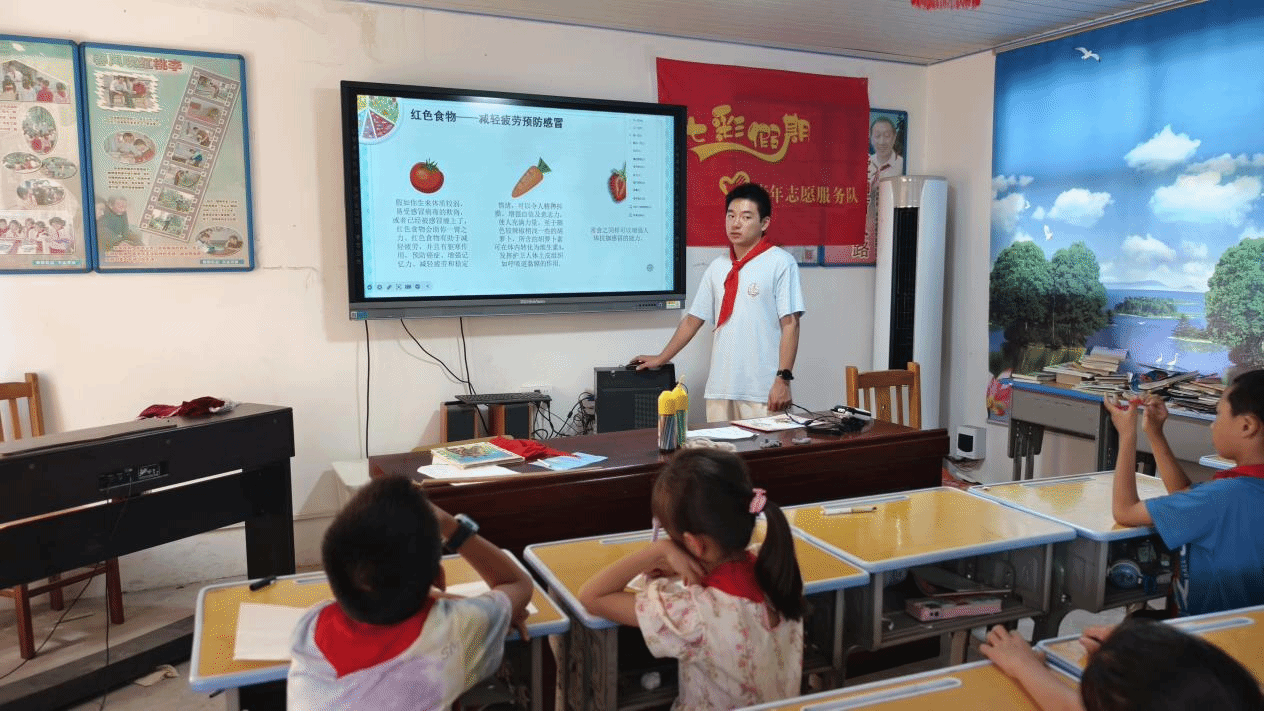 团委网8月7日消息(通讯员 顾洋洋 报道)健康是促进人的全面发展的必然要求,是经济社会发展的基础条件。实现国民健康长寿,是国家富强、民族振兴的重要标志,也是全国各族人民的共同愿望。为响应健康中国战略,引导青少年树立科学饮食观念,促进乡村振兴,2025年8月5日,武昌理工学院“灯塔计划”心爱筑梦公益团队在湖北省当阳市郑琦乡村少年宫展开关于饮食健康类的乡村振兴课程,课堂围绕食物色彩、四季饮食、食物功效及饮水健康等核心内容展开,让孩子们在趣味互动中掌握了实用的饮食知识。
