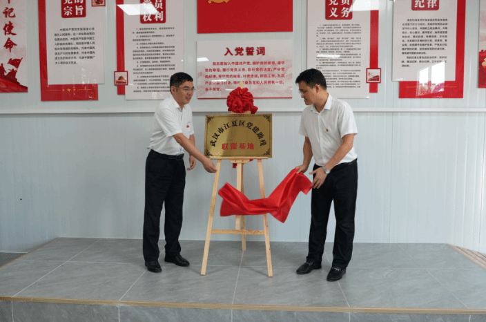 活动中,武汉市残联、江夏区残联相关负责人共同为武汉市江夏区党建助残联盟基地揭牌。