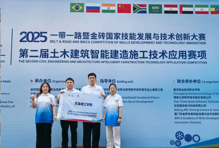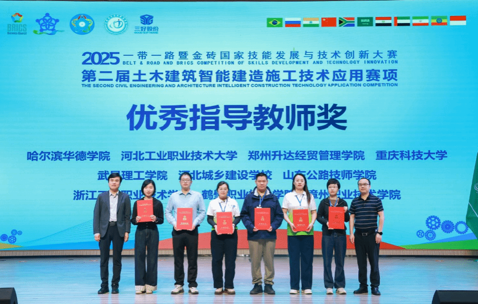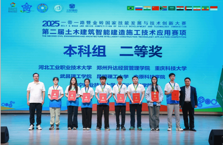 近日,2025一带一路暨金砖国家技能发展与技术创新大赛之第二届土木建筑智能建造施工技术应用赛项全国总决赛在重庆圆满落下帷幕。我院土木工程专业学子在此次高规格赛事中脱颖而出,斩获二等奖1项、优秀奖1项,以扎实的专业实力为学院赢得荣誉。