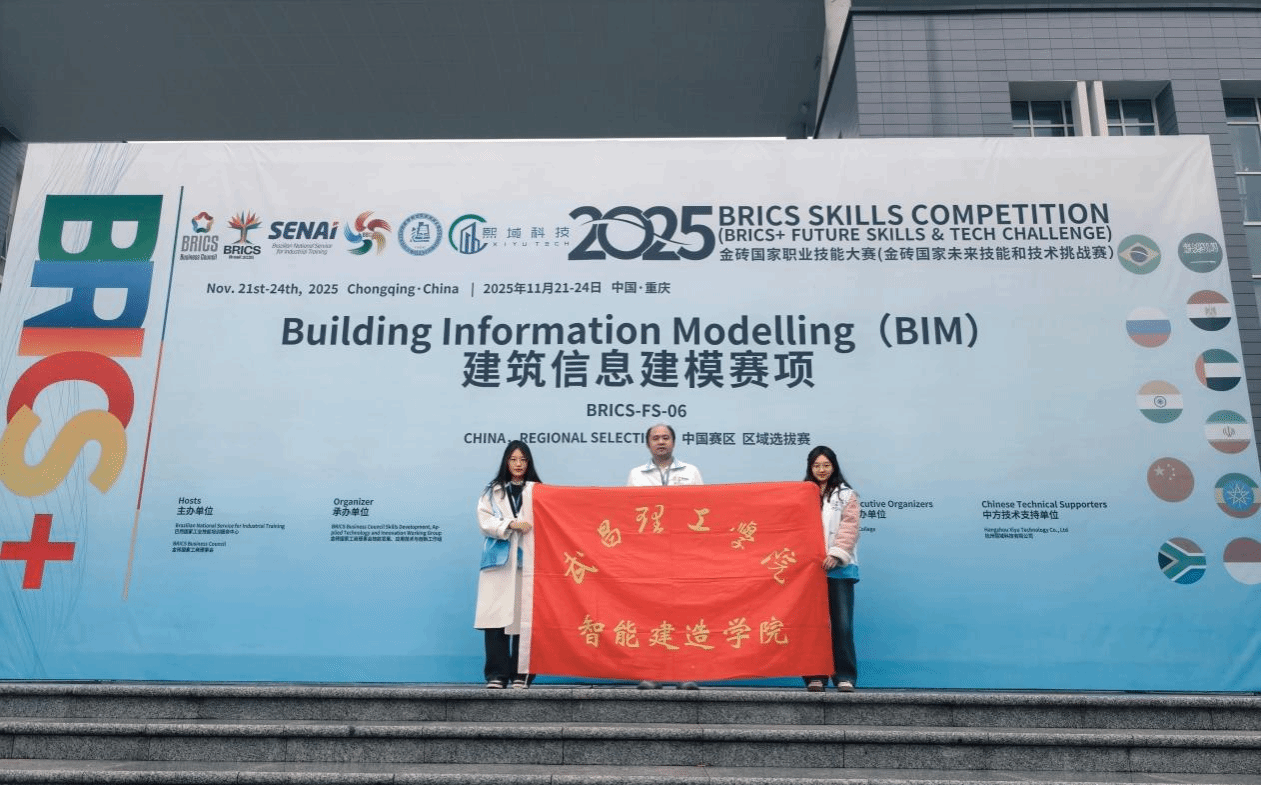 2025年11月21日至11月24日,武昌理工学院智能建造学院刘俊老师带领工程造价2201班的陆婉婷、孙烨两位同学参加了“金砖国家职业技能大赛”建筑信息建模赛项区域选拔赛。金砖国家职业技能大赛聚焦高端制造、数字经济、新产业、新业态、新技术等重点领域,提升金砖+国家院校师生在创新、协调、组织、合作等方面的能力,丰富金砖+国家院校和企业交流与合作内容,培养金砖国家国际化高质量技术技能人才与人文交流人才。