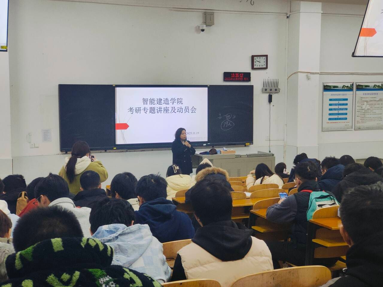 为帮助2023级学子明确考研方向、规划备考路径,激发大家的考研热情,11月19日晚,智能建造学院在实教楼成功举办2023级考研专题讲座及动员会。本次活动由学院王杰书记主持,特邀万学考研教育的刘康老师担任主讲嘉宾,为2023级学生带来2027届考研启动规划课程。