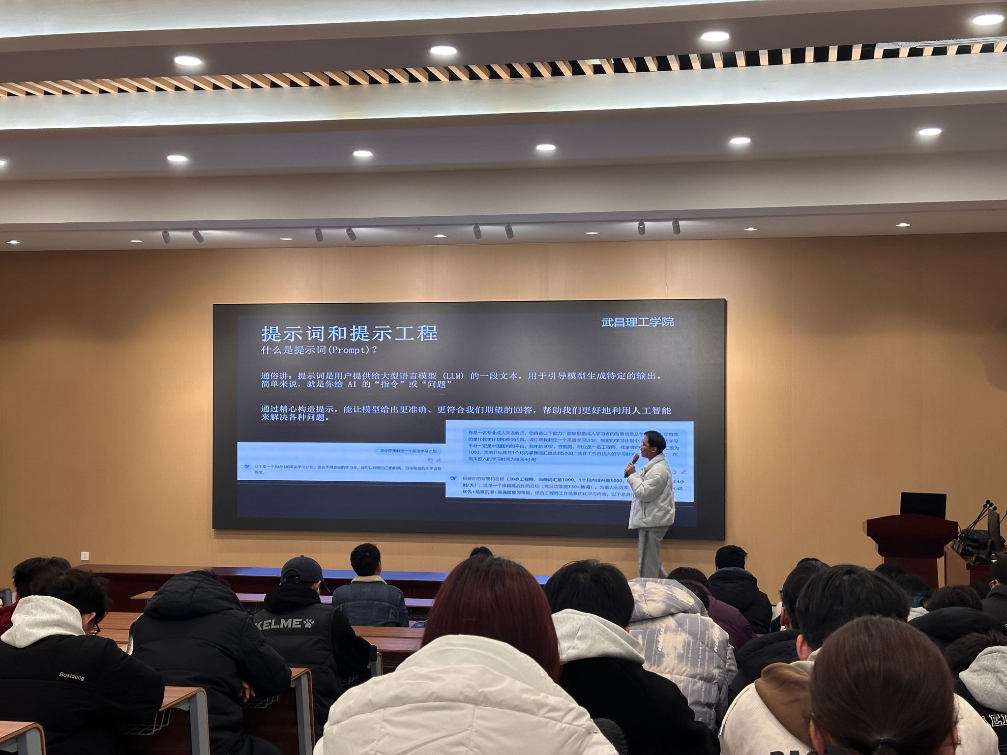 活动伊始,智能建造系骨干许炼老师带来了关于AI大模型应用及开发的专业分享。许老师结合行业发展趋势,系统解读了AI大模型的核心技术原理,重点阐述了Python语言在大模型开发中的基础支撑作用,深入剖析了Prompt Engineering、RAG(检索增强生成)、模型微调等关键技术的应用场景与实践要点。他指出,当前AI大模型已广泛渗透到智能建造领域,从建筑设计优化、施工过程管控到运维管理升级,都展现出巨大的应用潜力,鼓励同学们扎实掌握编程基础与AI核心技能,抓住行业发展的时代机遇。分享过程中,许老师还结合具体案例,对大模型开发的工具栈选择、学习路径规划等问题进行了细致解答,为同学们搭建起清晰的技术学习框架。